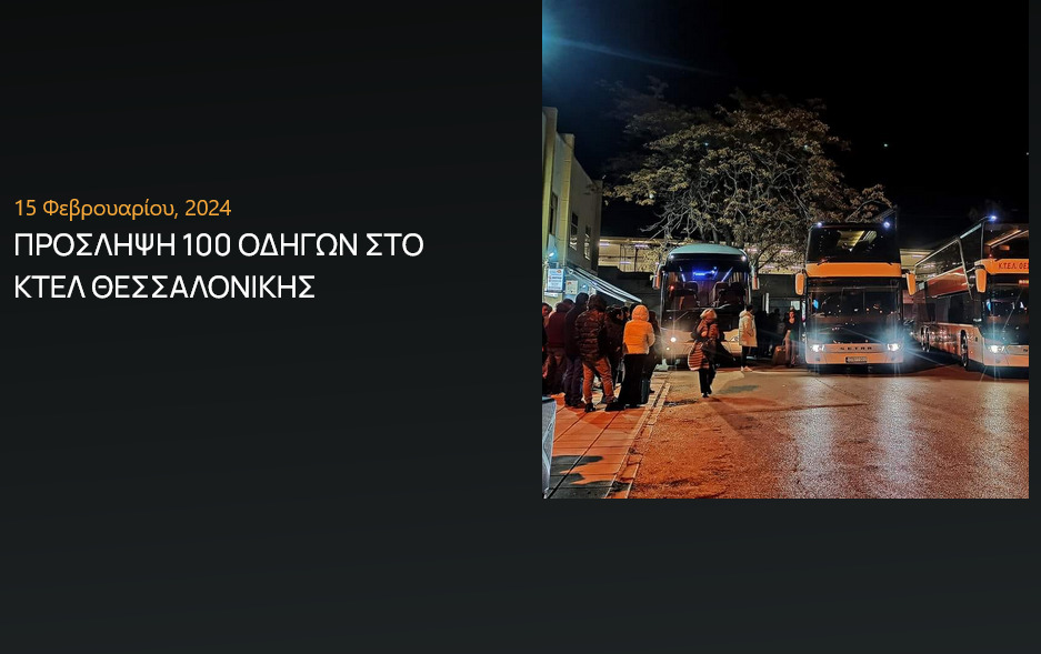 Τα ΚΤΕΛ, πάντως ακόμα ψάχνουν οδηγούς και αυτό φαίνεται και στην αγγελία στην ιστοσελίδα της εταιρίας που πρόσφατα ανανέωσε τη σύμβαση της με το ελληνικό δημόσιο, για την εξυπηρέτηση 43 γραμμών αστικών και ημιαστικών επιδοτούμενων από το κράτος γραμμών στη Θεσσαλονίκη.