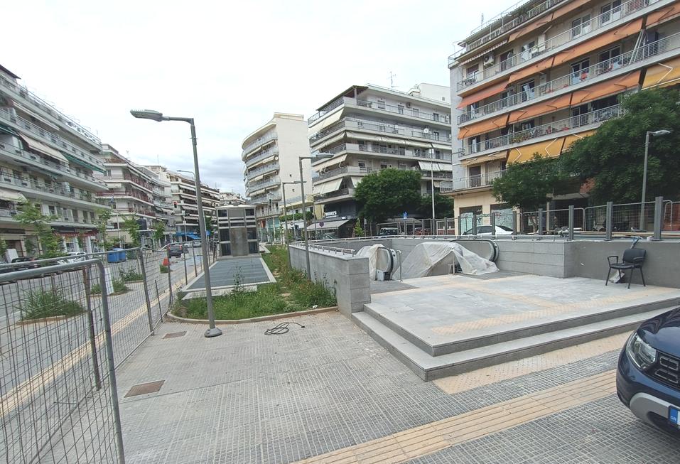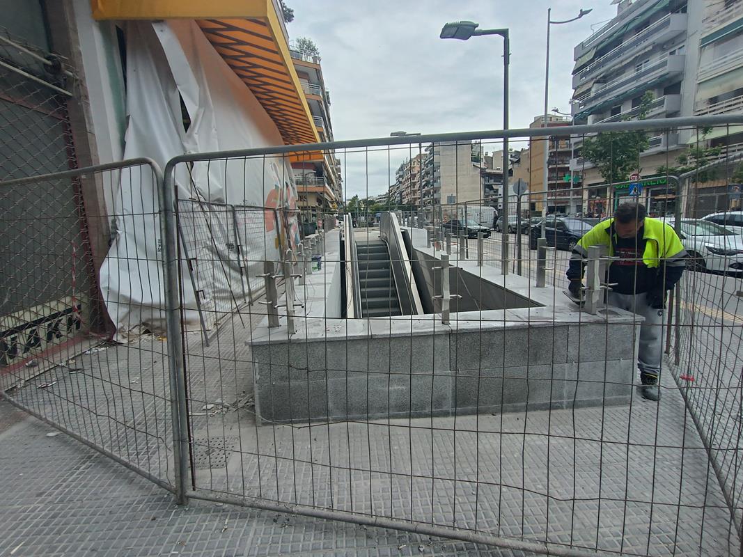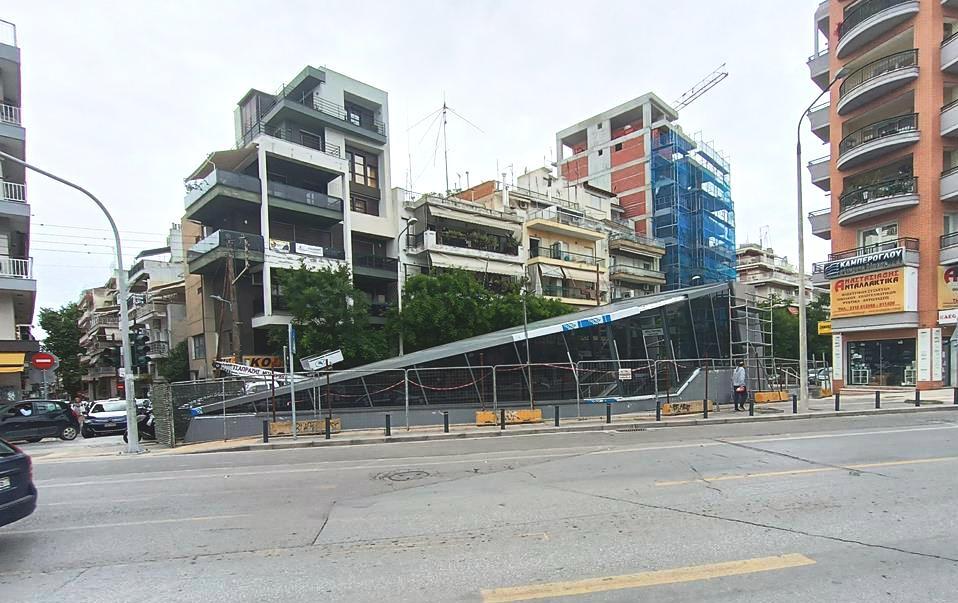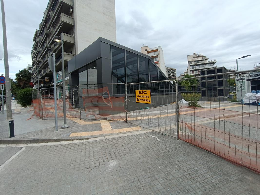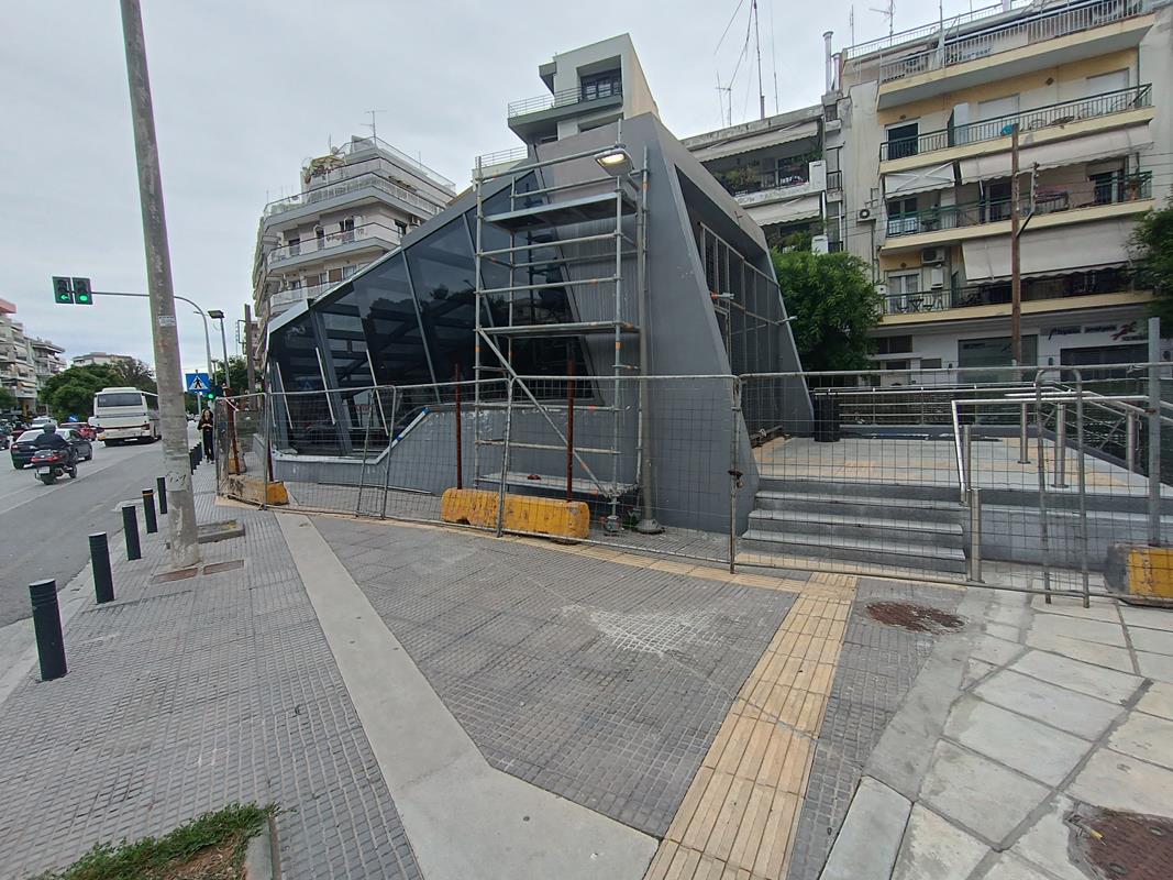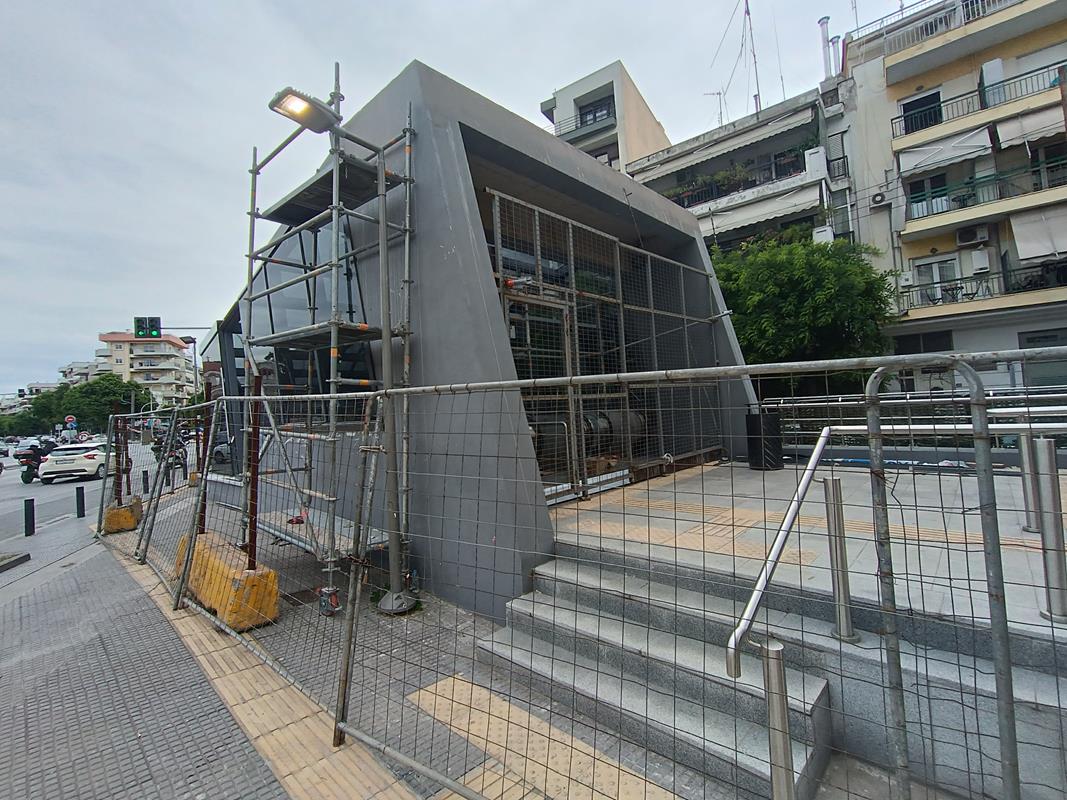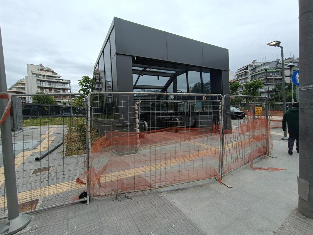 Ο σταθμός που βρίσκεται στην συμβολή των οδών Παπάφη και Κ. Καραμανλή, δείχνει σχεδόν έτοιμος να υποδεχτεί επιβάτες, αν εξαιρέσουμε τις σκαλωσιές και τα πλέγματα.