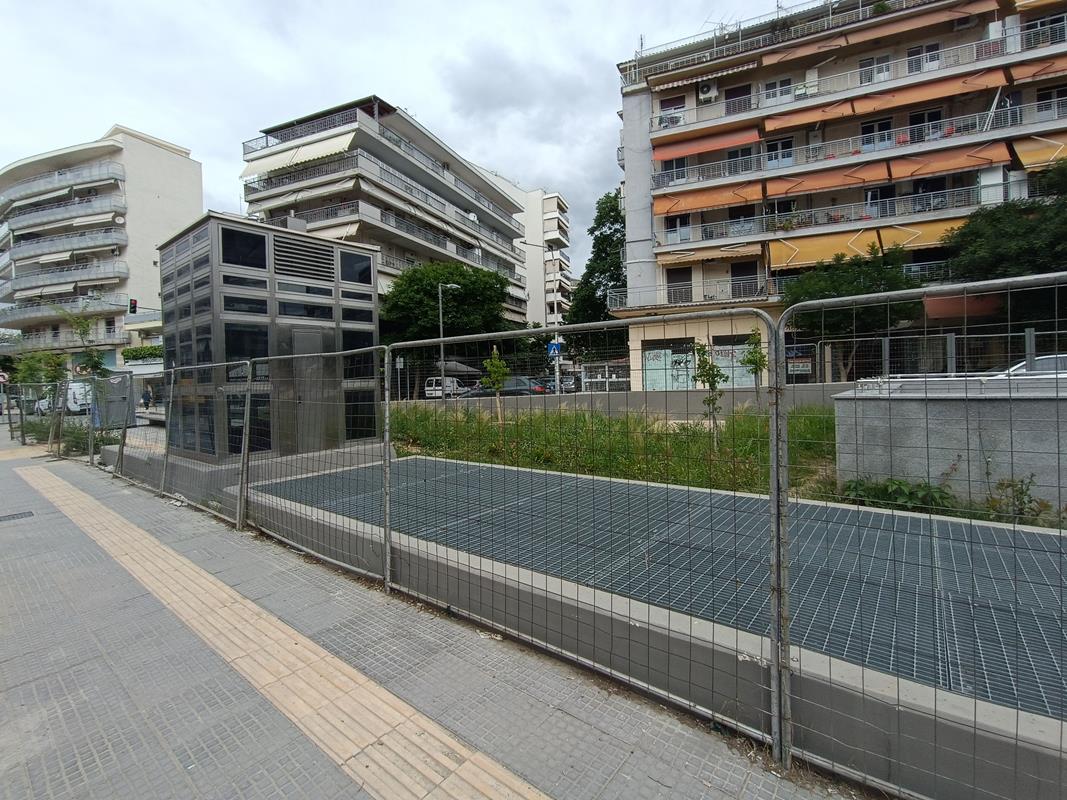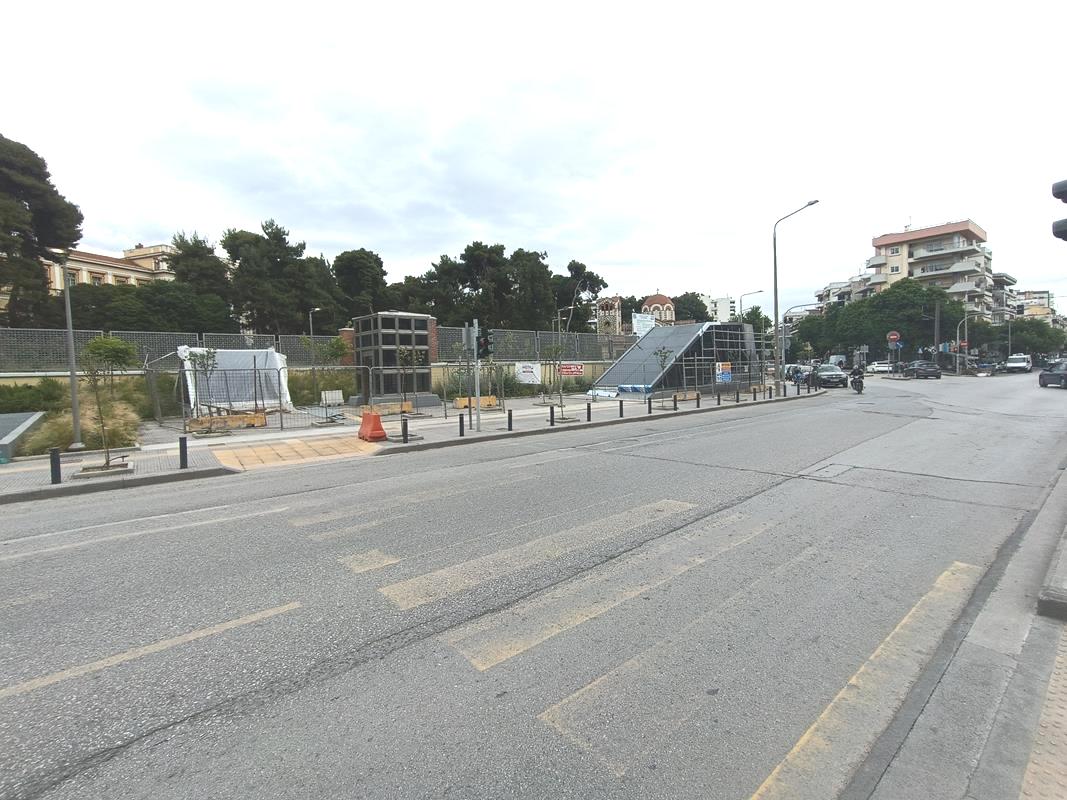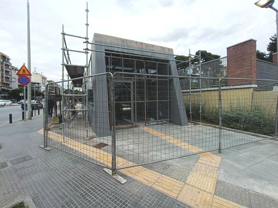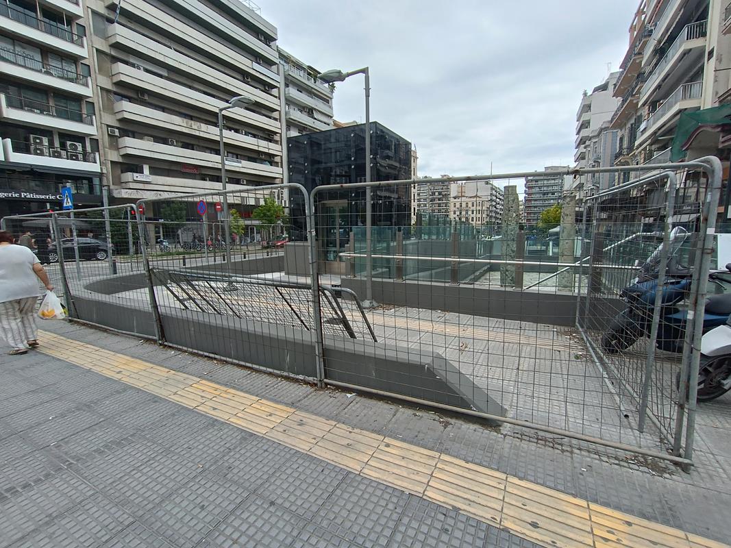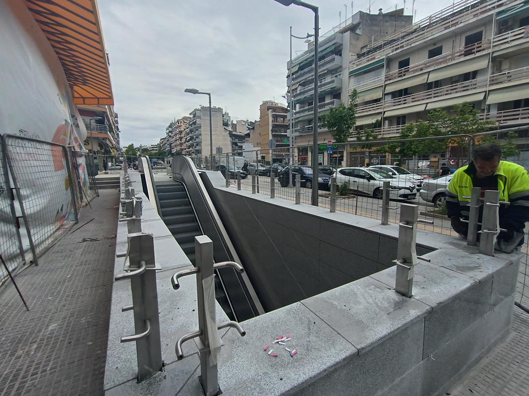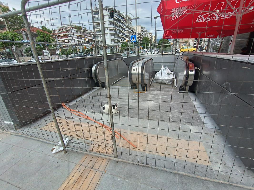 Ο σταθμός που βρίσκεται στην συμβολή των οδών Παπάφη και Κ. Καραμανλή, δείχνει σχεδόν έτοιμος να υποδεχτεί επιβάτες, αν εξαιρέσουμε τις σκαλωσιές και τα πλέγματα.