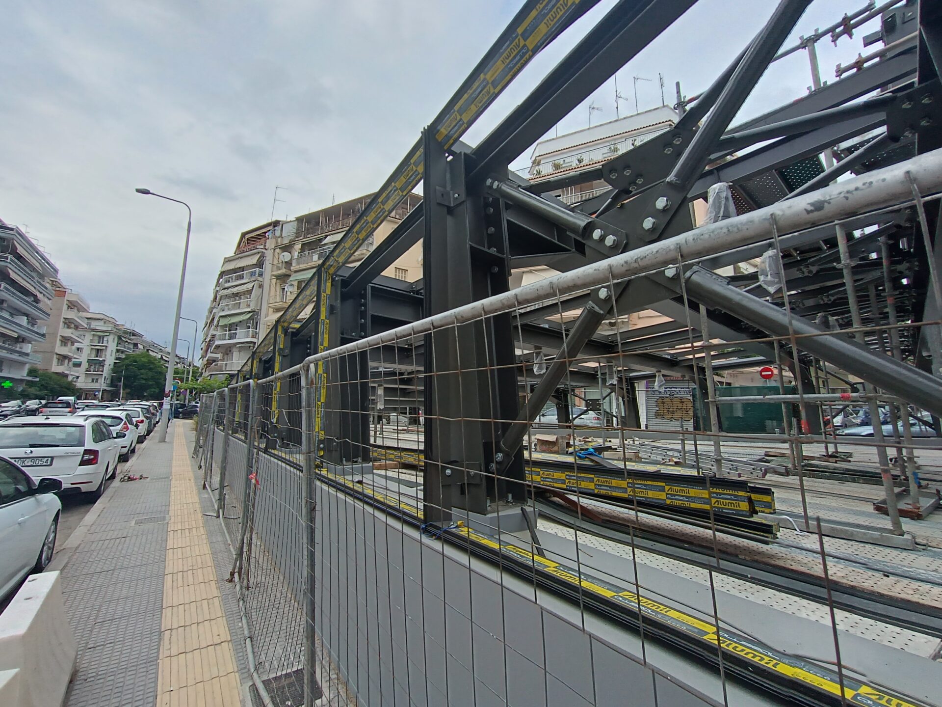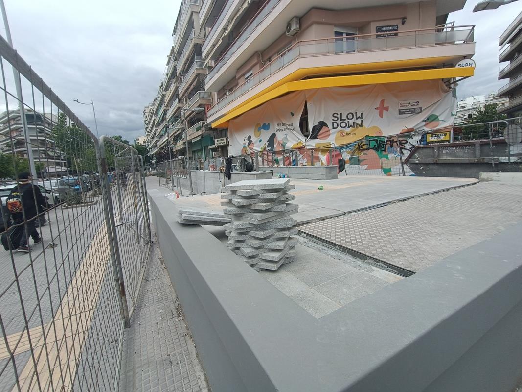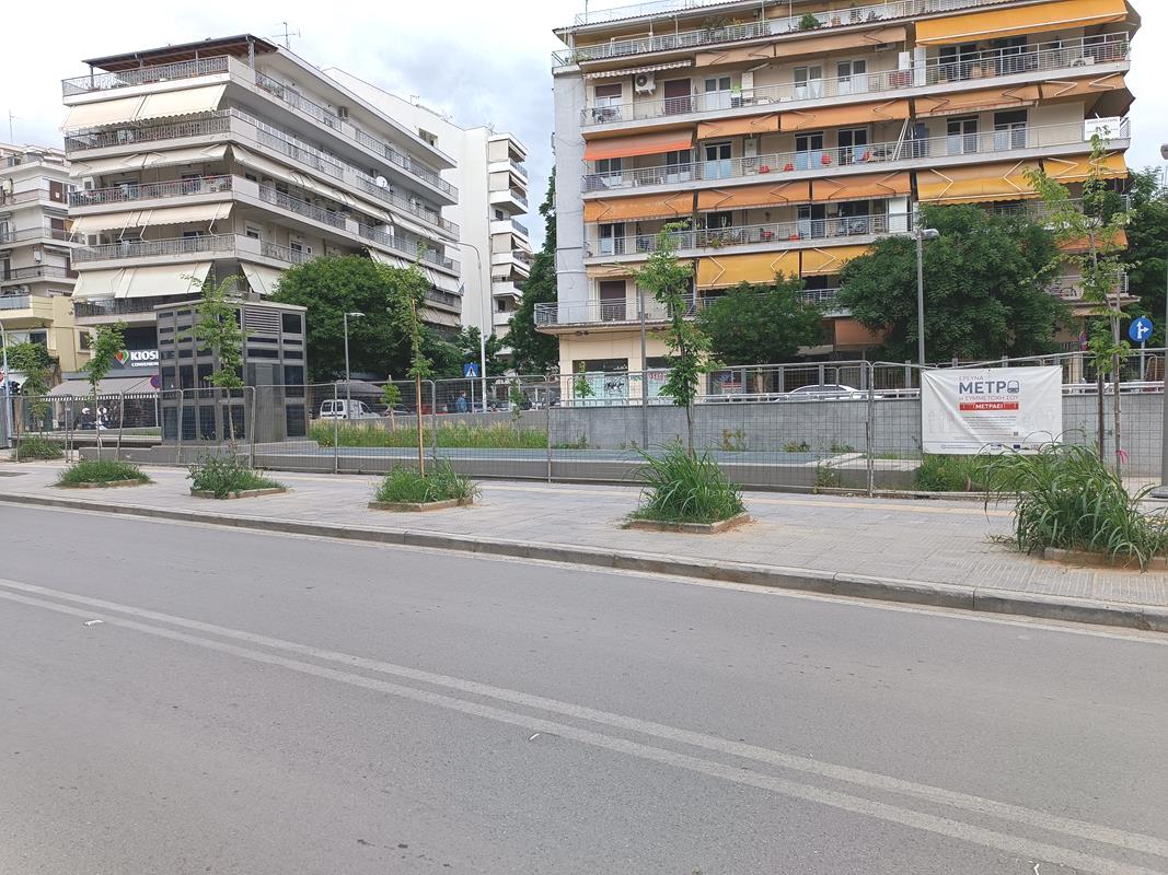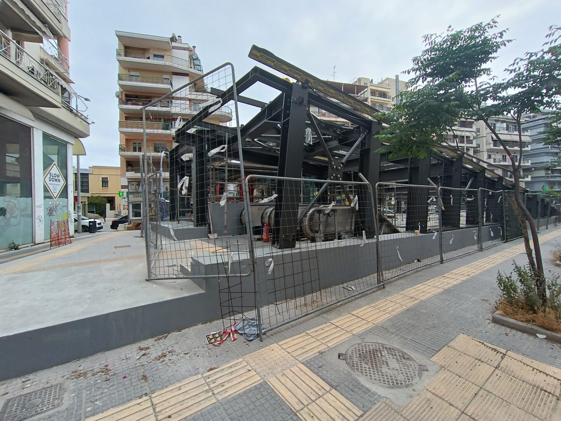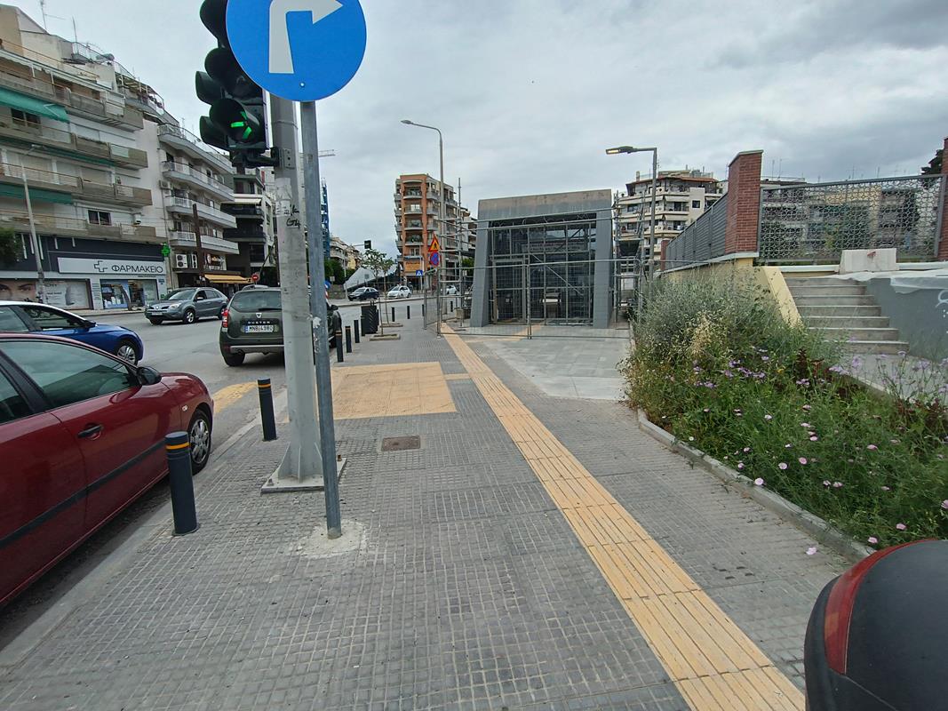 Ο σταθμός που βρίσκεται στην συμβολή των οδών Παπάφη και Κ. Καραμανλή, δείχνει σχεδόν έτοιμος να υποδεχτεί επιβάτες, αν εξαιρέσουμε τις σκαλωσιές και τα πλέγματα.