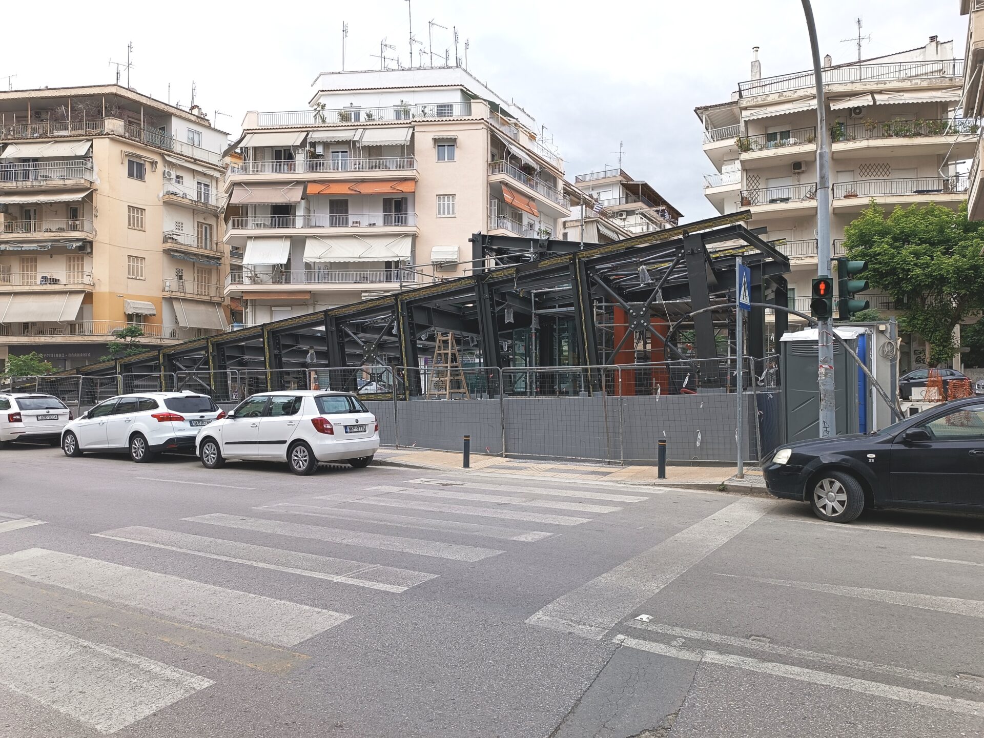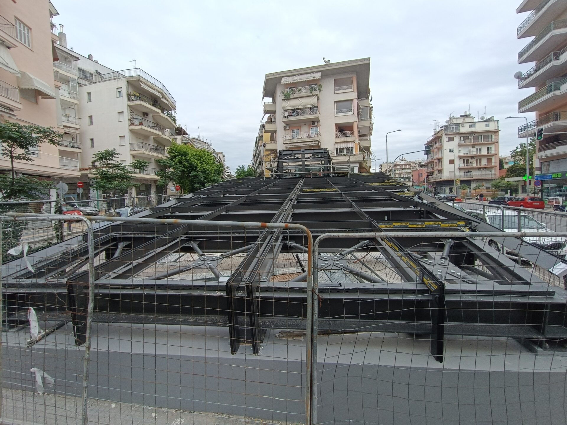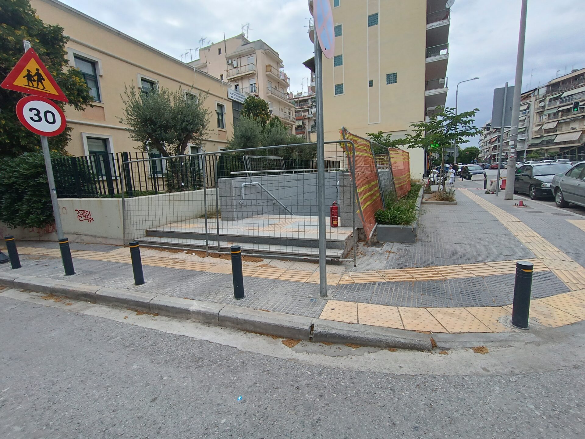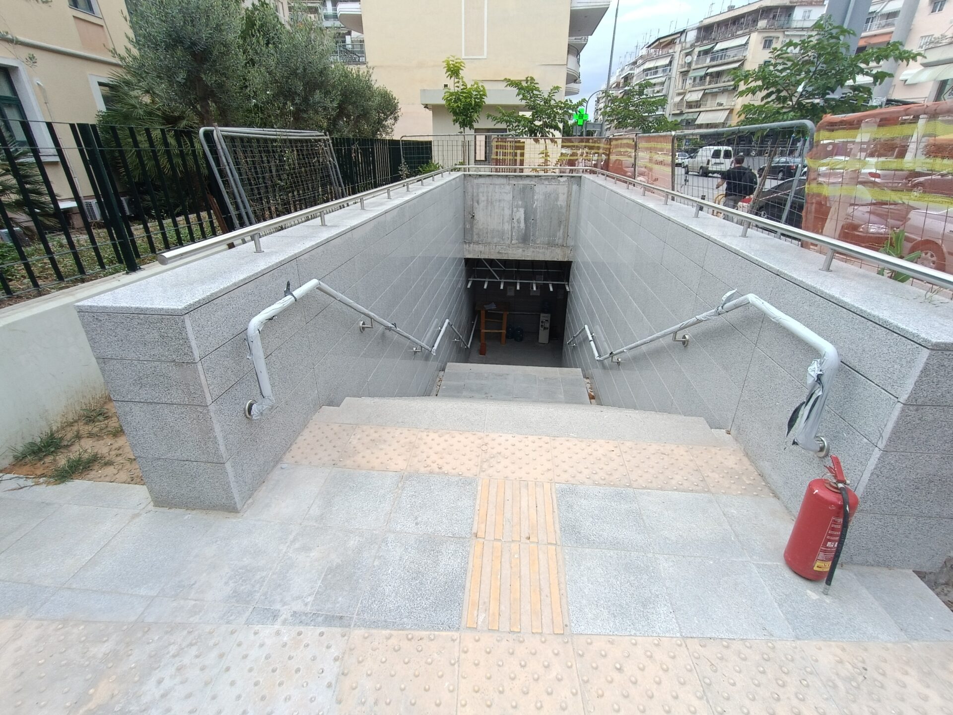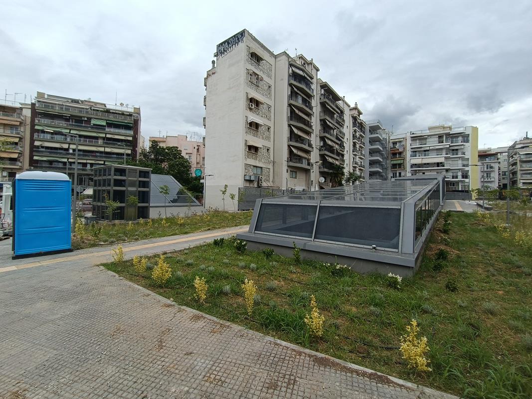 Ο σταθμός που βρίσκεται στην συμβολή των οδών Παπάφη και Κ. Καραμανλή, δείχνει σχεδόν έτοιμος να υποδεχτεί επιβάτες, αν εξαιρέσουμε τις σκαλωσιές και τα πλέγματα.