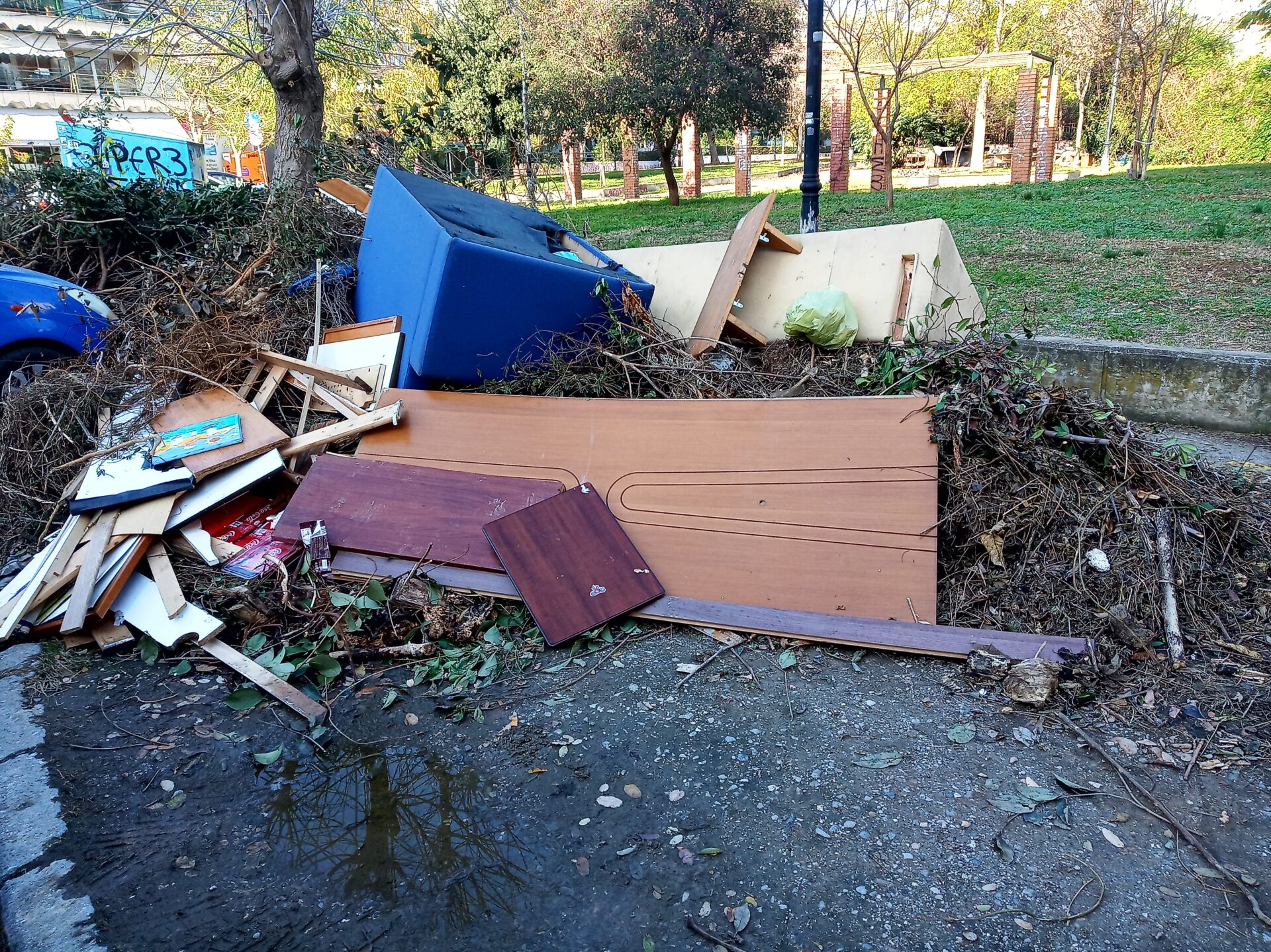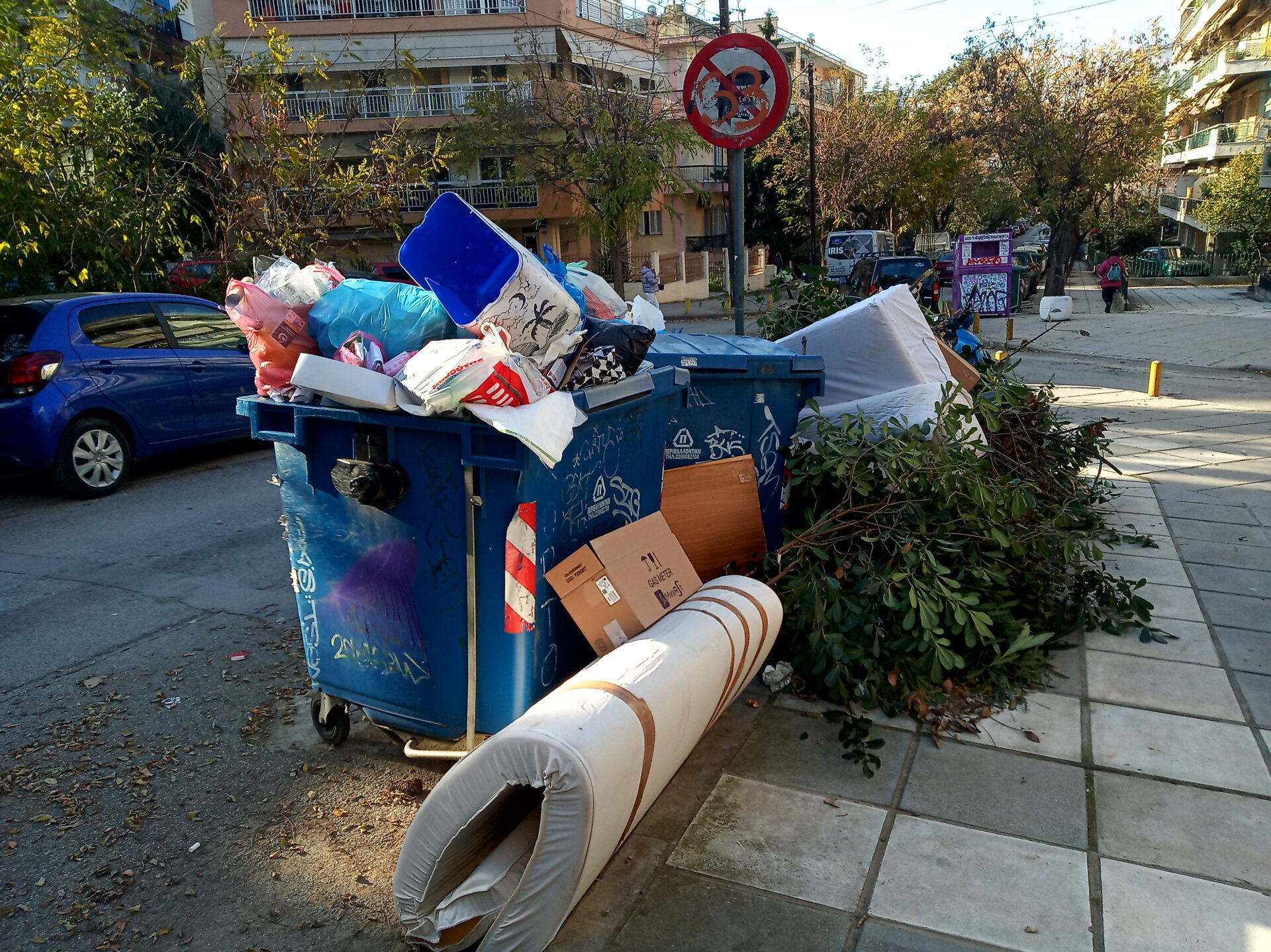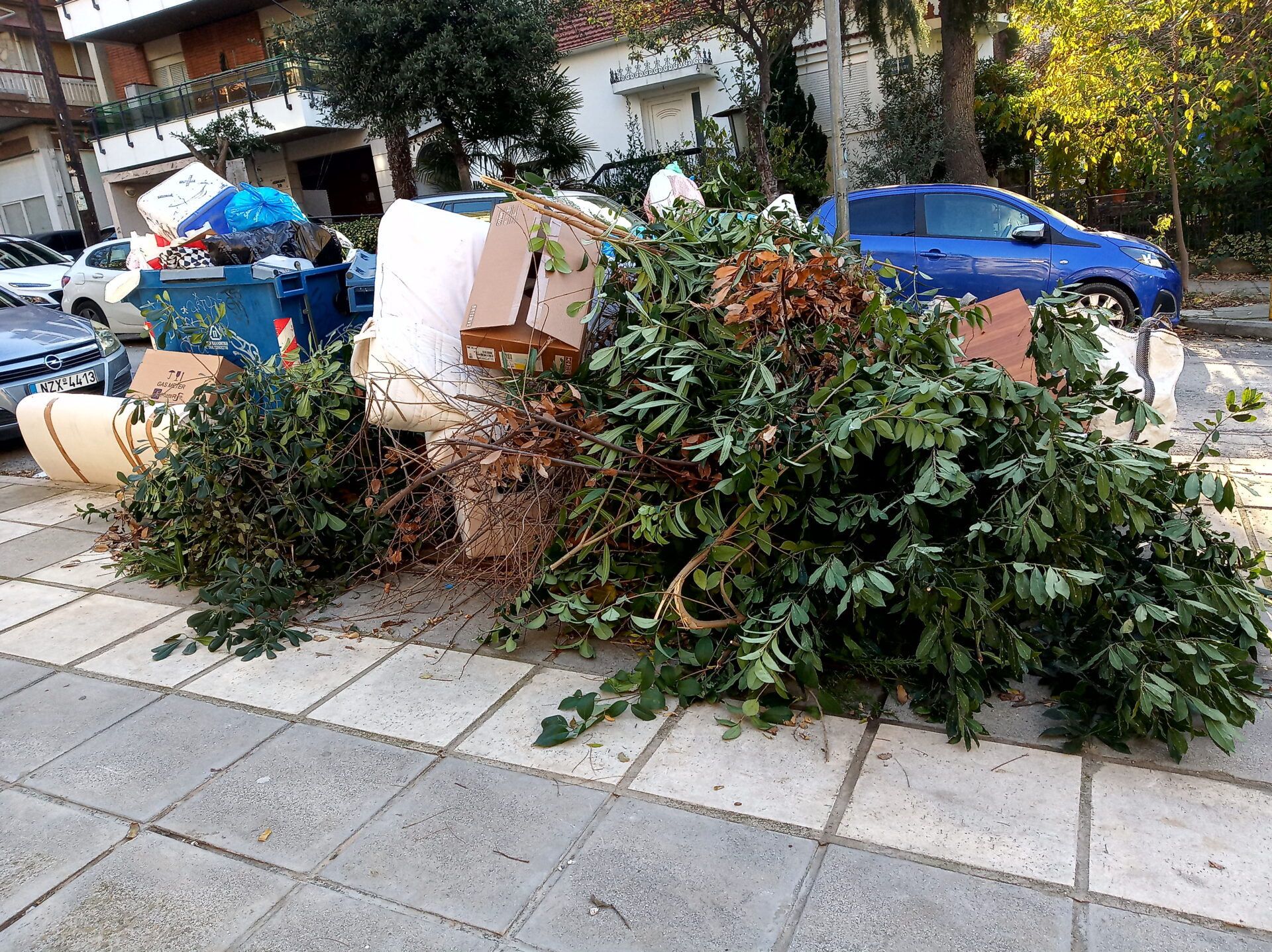 Ακόμα και δίπλα σε σχολεία ή πάρκα, ή μπροστά σε πολυκατοικίες, ανάμεσα σε αυτοκίνητα, τα παρατημένα ογκώδη αντικείμενα, από καναπέδες και καρέκλες, σπασμένα κλαδιά από κλαδέματα, στρώματα και χύδην μπάζα, και διάφορα άλλα οικιακά σκεύη, καταλαμβάνουν ολόκληρα πεζοδρόμια και διασκορπισμένα γύρω από συνήθως ξέχειλους μπλε κάδους, δημιουργούν εστίες μόλυνσης.