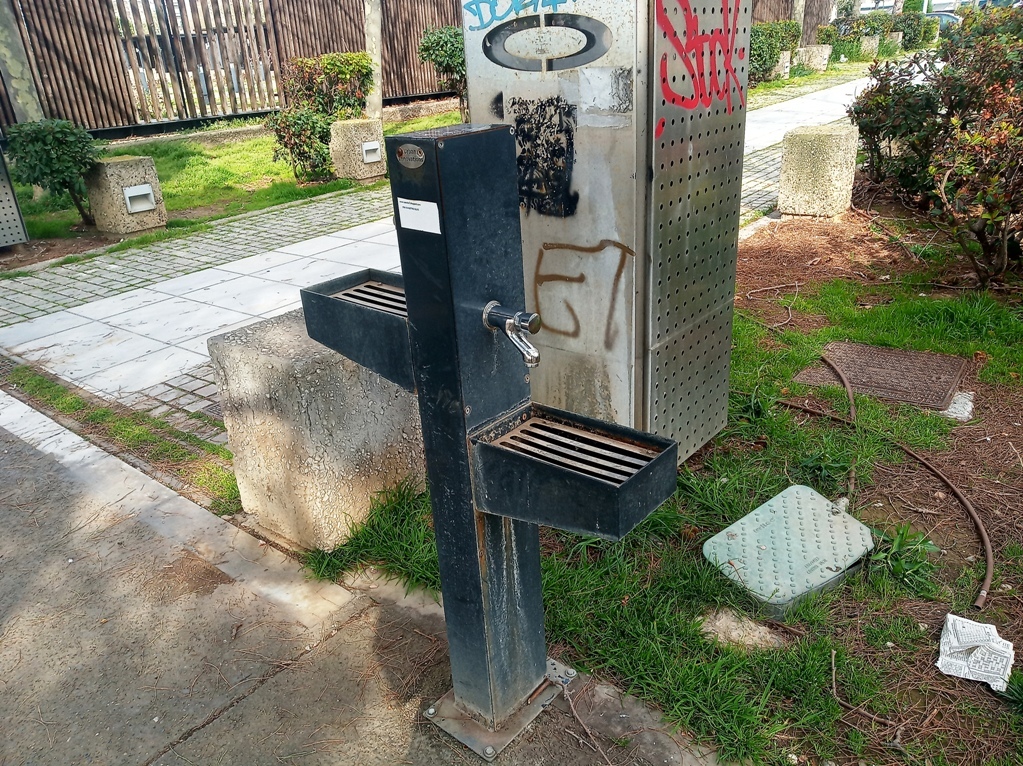 Οι βρύσες υπάρχουν για να έχουν νερό. Δεν είναι διακοσμητικά στοιχεία σε ένα ουδέτερο αστικό περιβάλλον. Δίπλα στα διάφορα γήπεδα και στα πάρκα, καμία βρύση δεν λειτουργεί ενώ κάποιες έχουν αρχίσει να σκουριάζουν. Ακόμα και μέσα στο πάρκο των σκύλων η βρύση ήταν ξερή και χωρίς νερό. Αδιαφορία για ανθρώπους και ζώα.