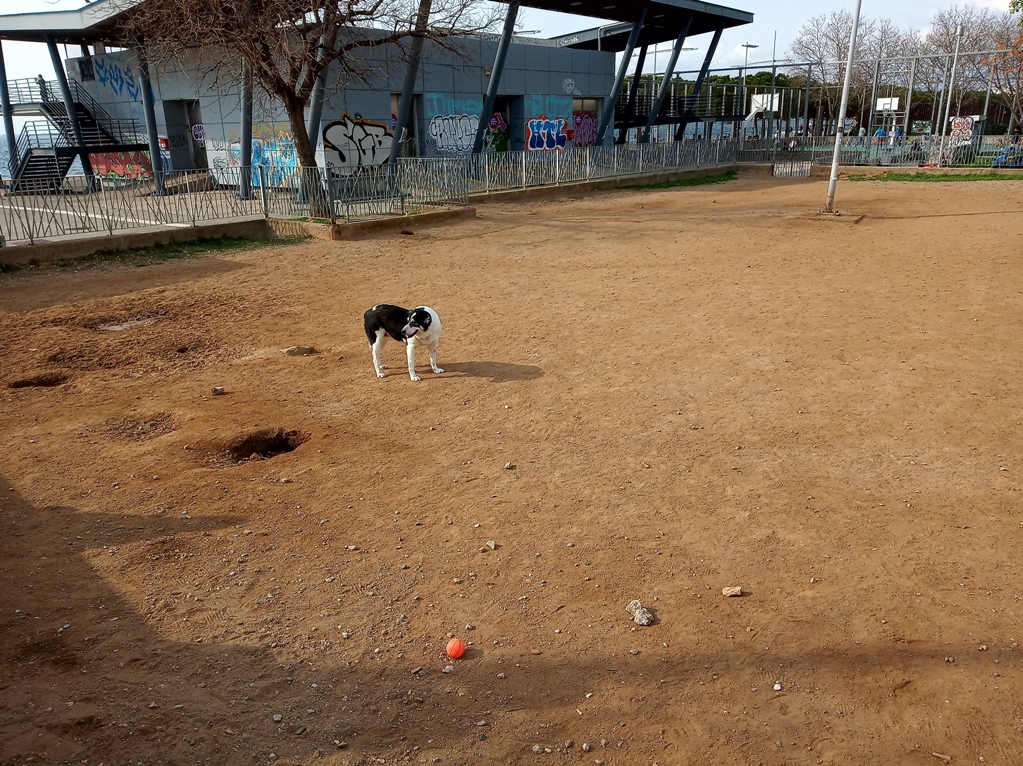 Για να επανέλθουμε στο περίφημο πάρκο των σκύλων στη Νέα Παραλία, που βρίσκεται στο ύψος της οδού Πέτρου Συνδίκα, ακριβώς πίσω από το κτίριο των εγκαταστάσεων του μεγάλου αντλιοστασίου της ΕΥΑΘ, πέρα από την άνυδρη και ξερή βρύση, ο χώρος μικρός και περιορισμένος, θυμίζει κρανίου τόπο.
