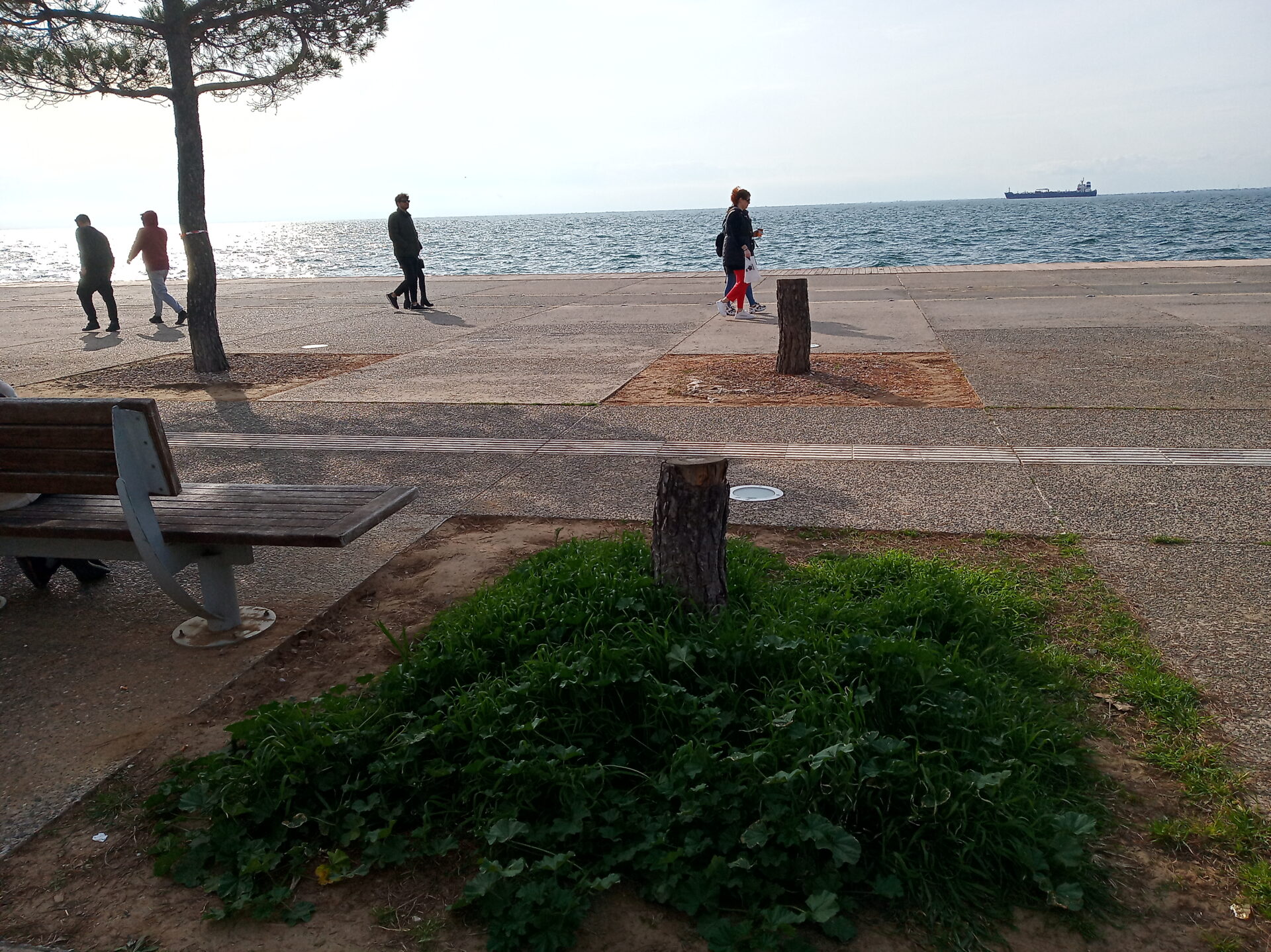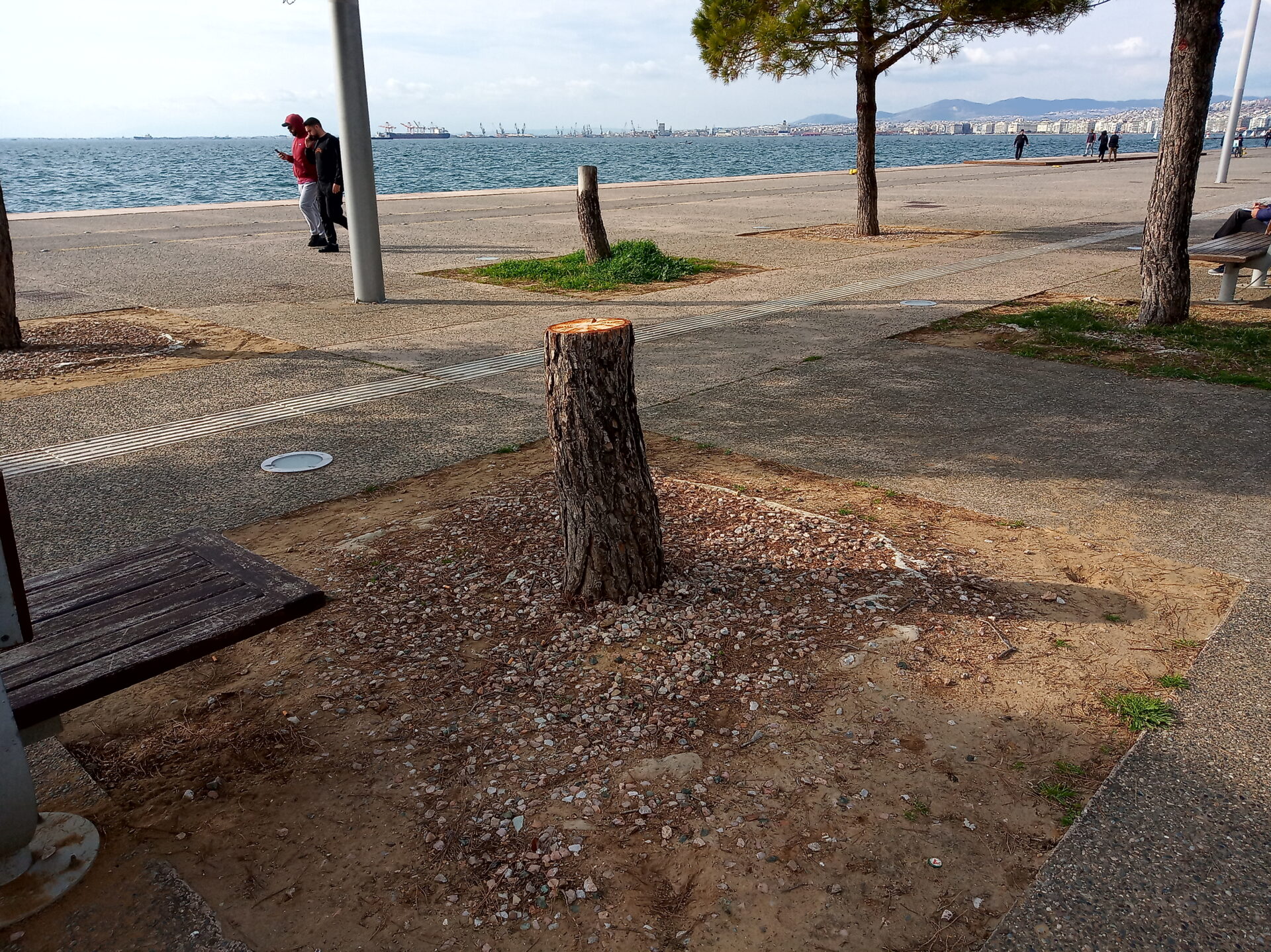 Αρνητική στη Νέα Παραλία, επίσης είναι η εικόνα των κομμένων δένδρων που χάσκουν με φόντο τη θάλασσα και πρέπει να αντικατασταθούν ενώ αλγεινή εντύπωση προκαλούν και τα διάφορα μικρά έργα επιδιόρθωσης των πεζοδρόμων που έχουν παρατηθεί στη μοίρα τους. Τα σκουριασμένα πλαίσια που έχουν τοποθετηθεί για την προστασία των πεζών, σχεδόν έχουν …ριζώσει λόγω της εγκατάλειψης.