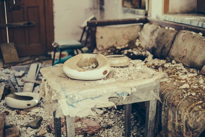 Περιδιαβάζεις τα σιωπηλά οικήματα, σκοντάφτεις σε άδεια μπουκάλια από φάρμακα και μπουρδουκλώνεσαι σε γάζες… Σε μια γωνιά το σιδερένιο κεφαλάρι ενός κρεβατιού και παραδίπλα ένα αναποδογυρισμένο δοχείο νυκτός… Σημειωματάρια, παιδικά βιβλία, ρούχα σε αποσύνθεση… Αν δεν ήταν τα «φουσκωμένα» σανίδια στα πατώματα, αν δεν ήταν κι οι πεσμένες στέγες, θα έλεγε κανείς ότι τα κτίρια αυτά εγκαταλείφθηκαν σχετικά πρόσφατα και μάλιστα με βιάση, με πίεση, αιφνίδια. Κι όμως, ο τελευταίος λεπρός, αποθεραπευθείς πια, «κλείδωσε» πίσω του για πάντα την πόρτα του ασύλου το 1957 (μαρτυρίες αναφέρουν ότι στην πραγματικότητα, το άσυλο «παροπλίσθηκε διά παντός δύο χρόνια αργότερα). Τη χρονιά που χονδρικά έκλεισαν όλα τα λωβοκομεία της χώρας, μετά την ανακάλυψη -από τον Νορβηγό γιατρό Χάνσεν- της Δαψόνης, του φαρμάκου κατά του μυκοβακτήριου της λέπρας.