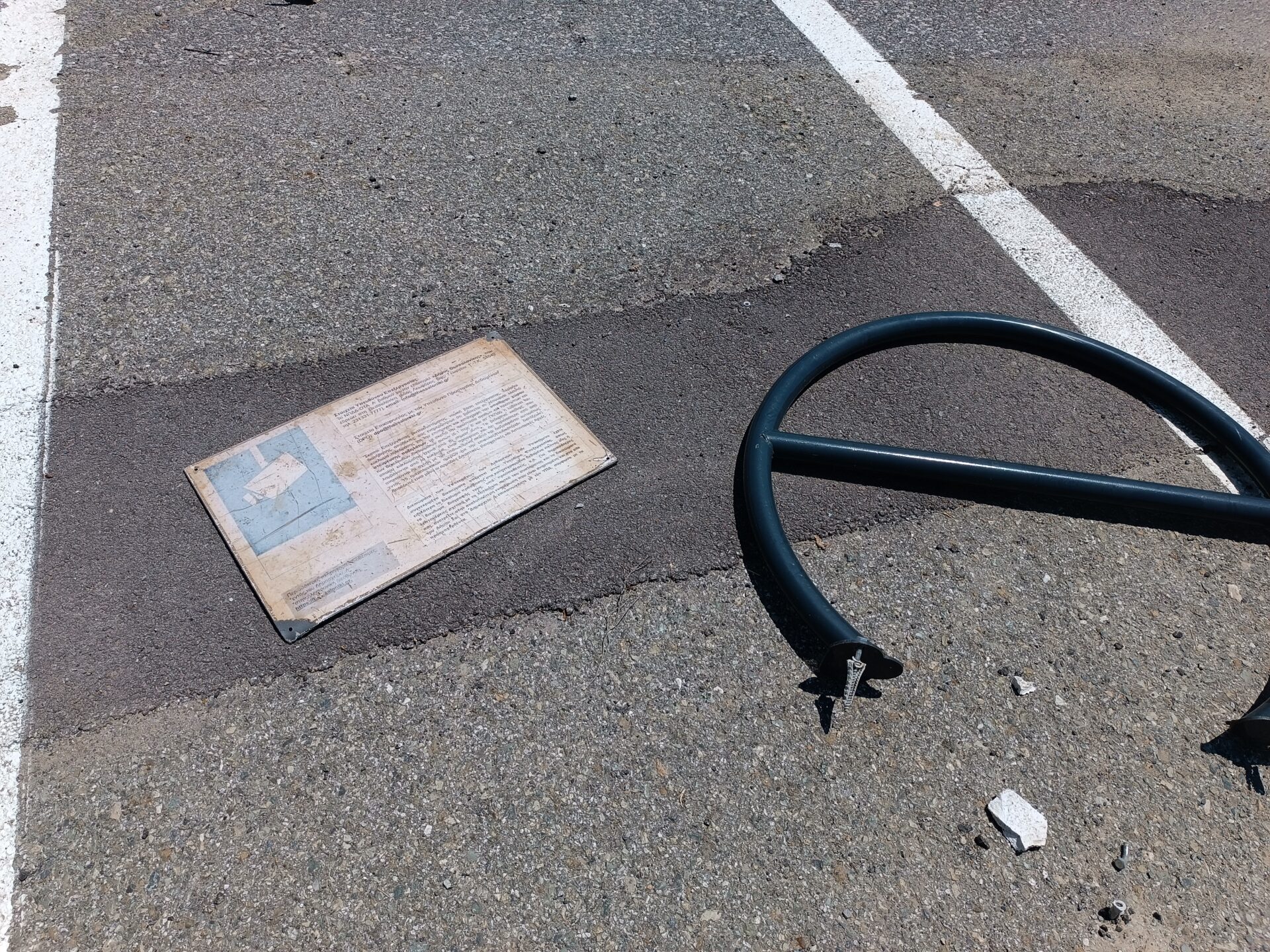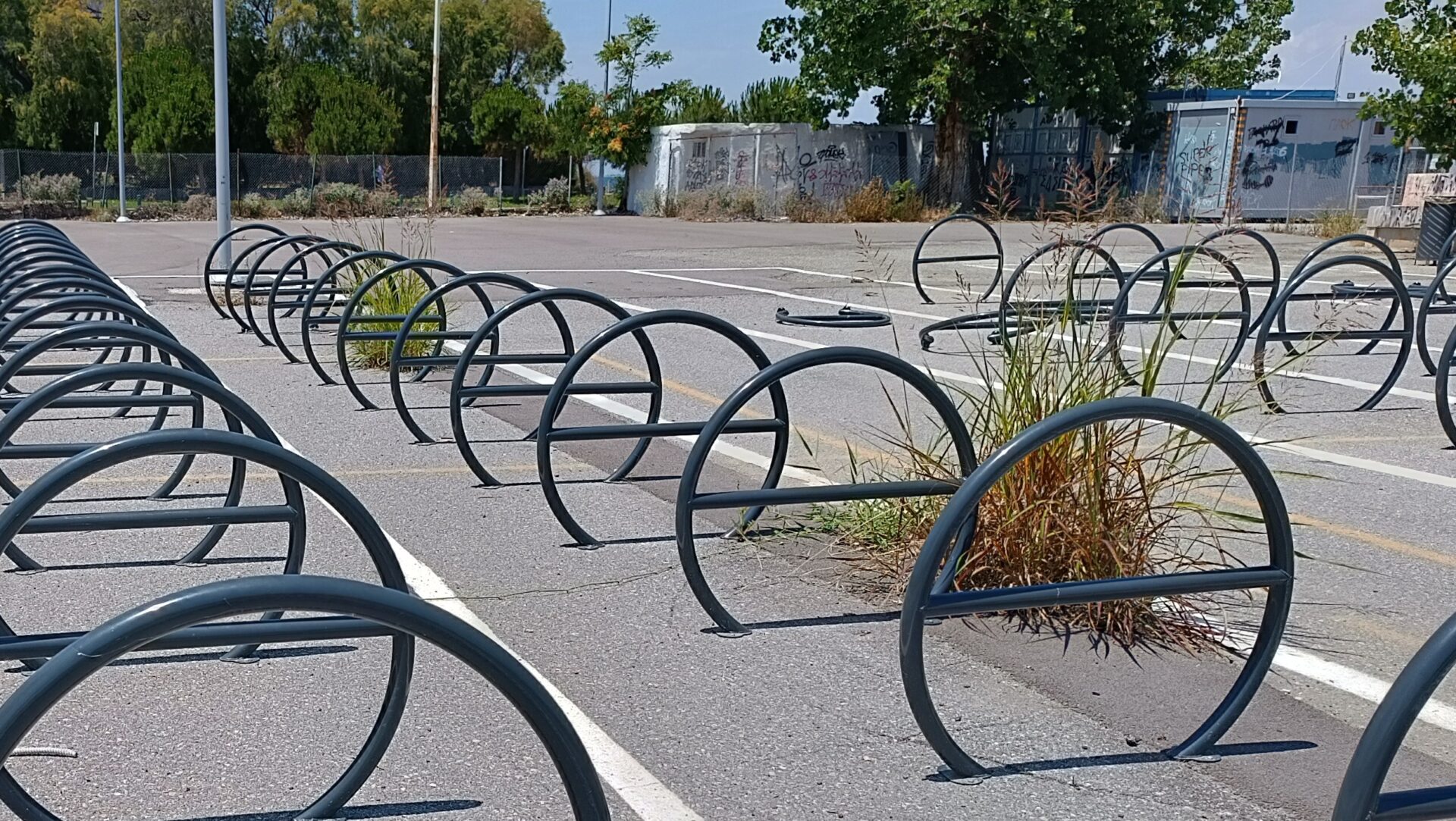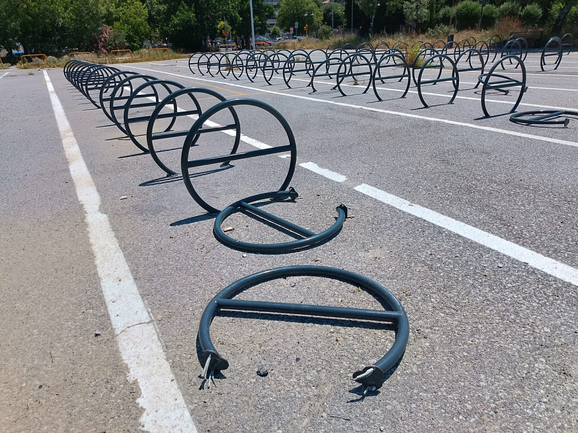 Πολλές από τις μπάρες στάθμευσης ποδηλάτων έχουν ξηλωθεί, προφανώς από διάφορους ασυνείδητους που έχουν επιδοθεί σε πλιάτσικο, ενώ ακόμα και οι πινακίδες που προειδοποιούσαν ότι ο χώρος φυλάσσεται από κάμερες παρακολούθησης, έχουν αποκαθηλωθεί και πεταχτεί στο έδαφος.