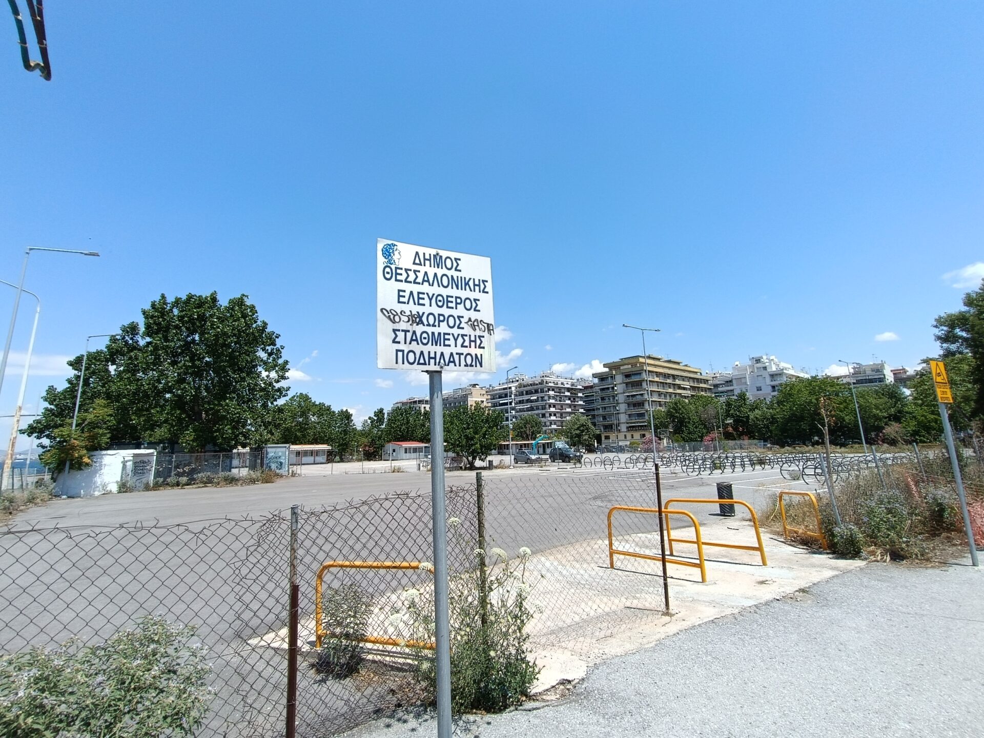 Έρμαιο των καιρικών συνθηκών και των ασυνείδητων, έχει αφεθεί το δημοτικό ελεύθερο παρκινγκ ποδηλάτων, που βρίσκεται στη περιοχή μπροστά στο Μέγαρο Μουσικής Θεσσαλονίκης και ήδη έχει τεθεί σε τροχιά απομάκρυνσης και αναμένεται να ξηλωθεί στο τέλος Ιουνίου.