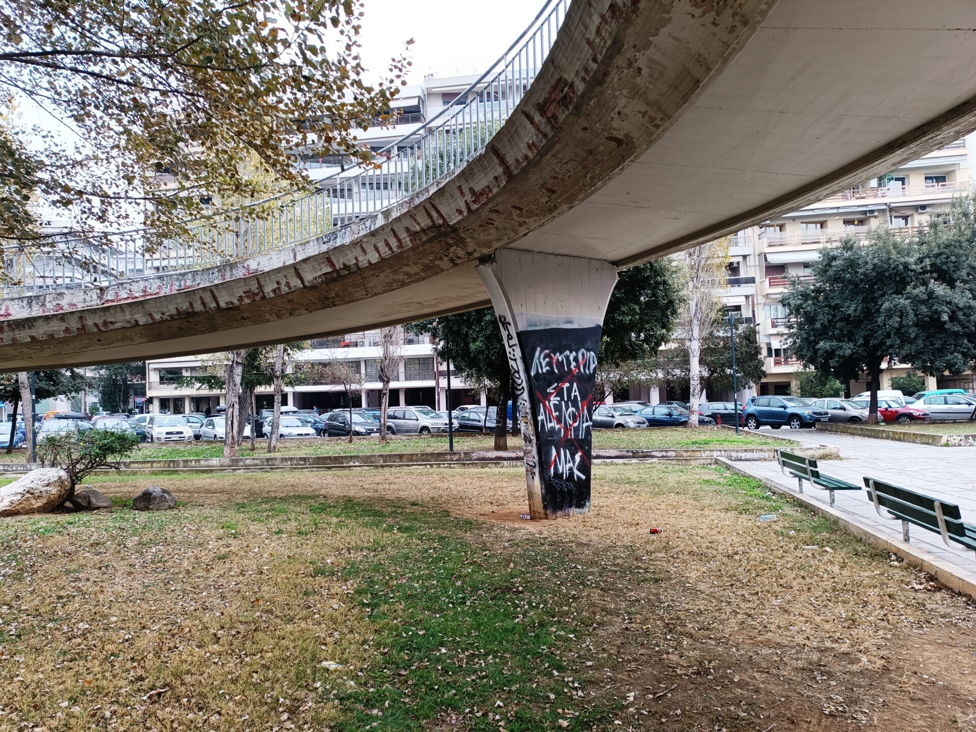 Ωστόσο έκτοτε η πεζογέφυρα προφανώς έχει εγκαταλειφτεί στην μοίρα της και γι αυτό παρουσιάζει αυτή την κατάσταση διάβρωσης και φθοράς, για την οποία ο δήμος Θεσσαλονίκης πρέπει να κινητοποιηθεί και να προχωρήσει σε εργασίες αποκατάστασης.