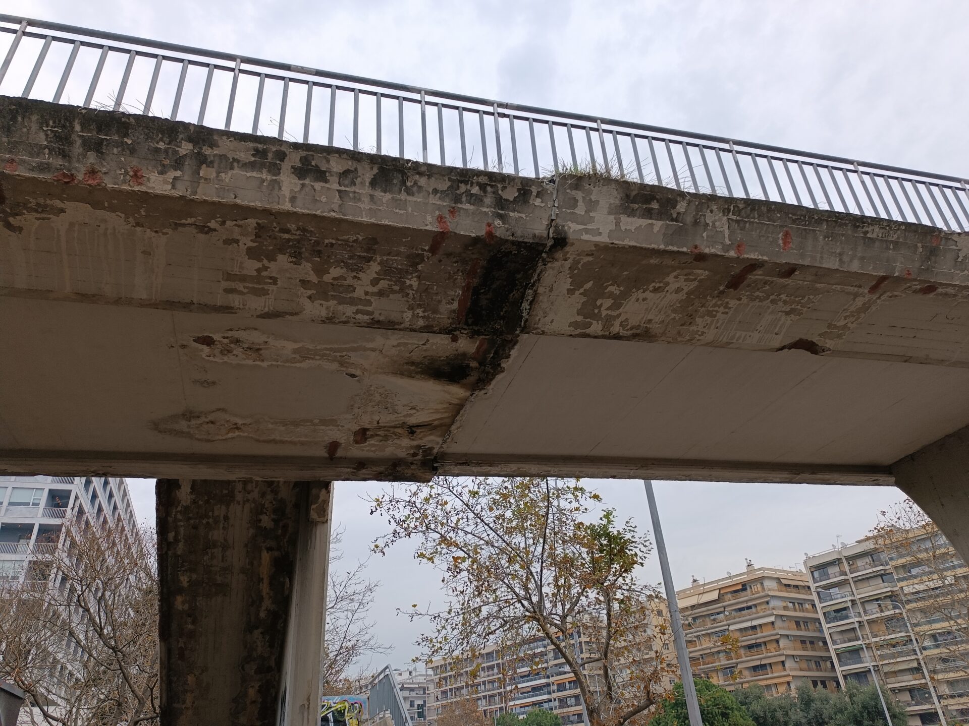 Πάντως μηχανικοί του ΤΕΕ/ΤΚΜ μετά από επιθεώρηση στην πεζογέφυρα το 2022, αποφάνθηκαν ότι δεν κινδυνεύει με κατάρρευση αλλά οι φθορές ιδίως, στους αρμούς, πρέπει να αποκατασταθούν και για λόγους ασφάλειας και ενίσχυσης της κατασκευής.