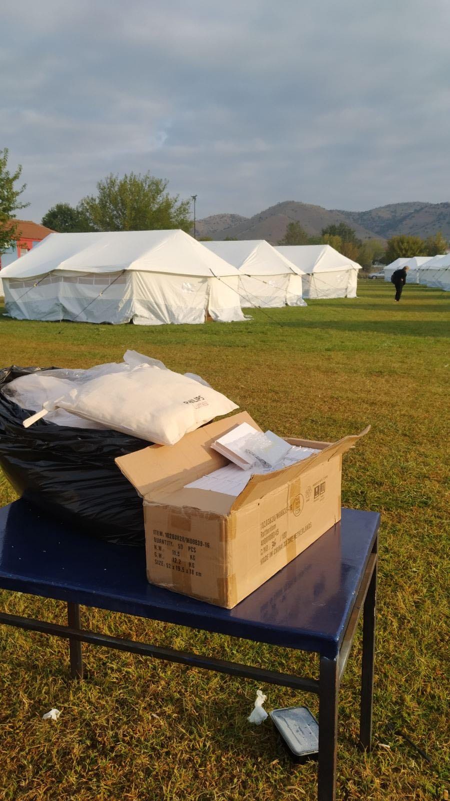 Εχθές το βράδυ που το πρότεινα αυτό μου έλεγαν “θα κάτσουμε στα αυτοκίνητα μας, μία βραδιά είναι θα περάσει.” Υπάρχουν παιδιά και ηλικιωμένοι ανάμεσα στους ανθρώπους, έχουν χάσει τα σπίτια τους, δεν τους έχει μείνει τίποτα. Στο γήπεδο έχουμε δέκα ντουζιέρες και δύο τουαλέτες αντρών – γυναικών και δύο χημικές. Εγώ πίεσα να λειτουργήσουν οι εγκαταστάσεις, οι αρχές δεν ασχολήθηκαν. Υπάρχει άνθρωπος με κομμένο πόδι σε σκηνή. Καλέσαμε γιατρό από το κέντρο υγείας Φαρκαδόνας, κάθε μέρα μιλούσα με την διευθύντρια του κέντρου και επισκεπτόταν γιατρός τους ανθρώπους. Η κ. Μπάλη μας έδωσε φάρμακα και ότι χρειαζόμασταν. Είμαι αγανακτισμένη. Δεν έχω να πω τίποτε πραγματικά.”