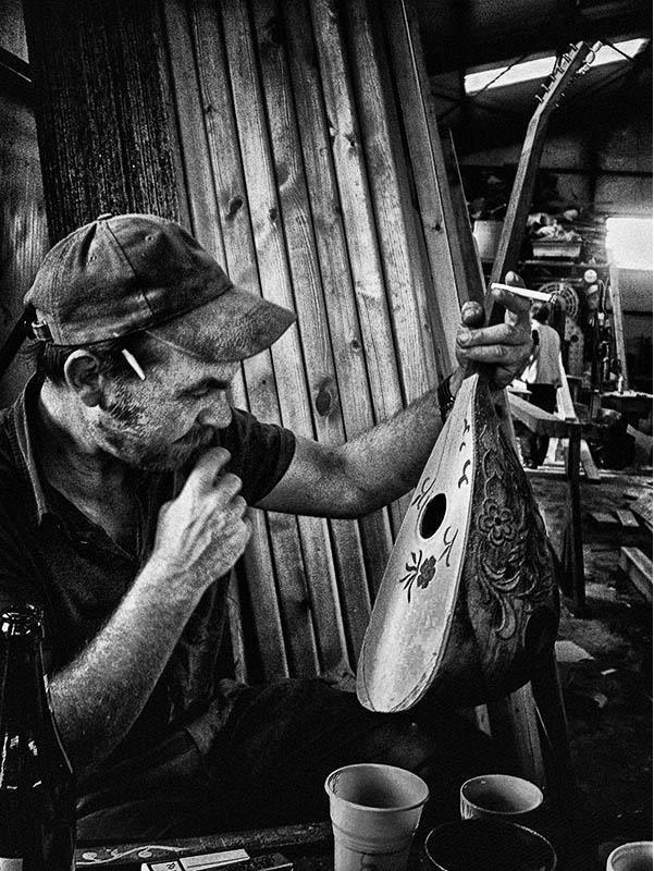 Αυτή είναι η προϊστορία μου. Είχα και το νου στο ξυλουργείο. Πάντα. Αυτός ο τόρνος είναι ένα αδηφάγο τέρας που ‘χει ένα μόνο δόντι-το μαχαίρι- και κατατρώγει τα ξύλα. Γνωρίζει όλα τα ξύλα. Σκαλίζει κι όργανα με δαύτα. «Το μαραγκό το μάστορα όλοι κατηγορούνε, γιατί έκοψε τρανό δεντρί και ψάχνουν να τον βρούνε». Θέλει γεωμετρία η τέχνη του μαραγκού. Γεωμετρία όμως χρειάζεται και για να μπεις στη μουσική κι αυτό στο υπογράφω. Κι έμπνευση θέλει. Εγώ εμπνέομαι από τα πάντα. Κι επειδή κοντεύω μισό αιώνα συμμορφώνομαι σιγά σιγά. «Αυτό που χτες περίσσευε αύριο δε θα φτάνει». Μπορεί να μην το δείχνουμε, αλλά μέσα μας το ξέρουμε ότι αλλάζουμε. Τα στημένα όμως ποτέ δε μου άρεσαν. Στημένα σε τέσσερα ποδάρια. Τα δύο δε στέκουν, τα τρία ισορροπούν, τα τέσσερα κουτσαίνουν.
