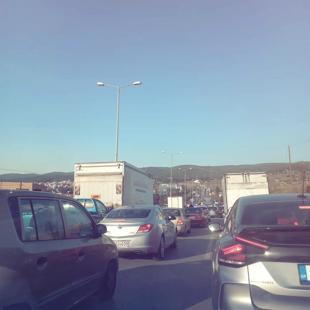 Ξεκινήσανε αρχικά να πάνε από περιφερειακό, είδανε ότι είναι μπλοκαρισμένος και στρίψανε προς Πανόραμα-Ασβεστοχώρι (από εκεί κάνουν συνήθως 1 ώρα) αλλά σήμερα ήταν μπλοκαρισμένος και αυτός οπότε πηγαίνανε σημειωτόν.”