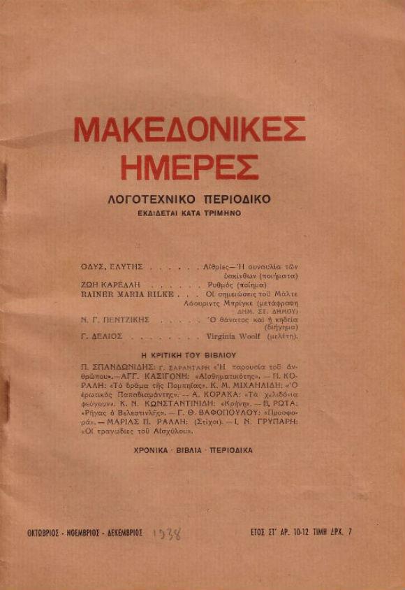 * Η φωτογραφία στην αρχή του θέματος προέρχεται από το λεύκωμα του Δήμου Θεσσαλονίκης και του Βαφοπούλειου Πνευματικού Κέντρου “Β’ Περίοδος Πνευματικής Δημιουργίας- Θεσσαλονίκη 2003”. Απεικονίζεται η “συντροφιά των Μακεδονικών Ημερών το 1938. Διακρίνονται από αριστερά προς τα δεξιά Όρθιοι: Τάκης Βαρβιτσιώτης, Γ. Θέμελης, Στρ. Δούκας, Ν.Γ. Πεντζίκης, Στ. Ξεφλούδας, Αντ. Λεβής. Καθισμένοι: Γ.Θ. Βαφόπουλος, Βασ. Τατάκης, Π. Σπανδωνίδης, Αλκ. Γιαννόπουλος, Γ. Δέλιος.” (από το αρχείο του ποιητή Γ.Θ. Βαφόπουλου)