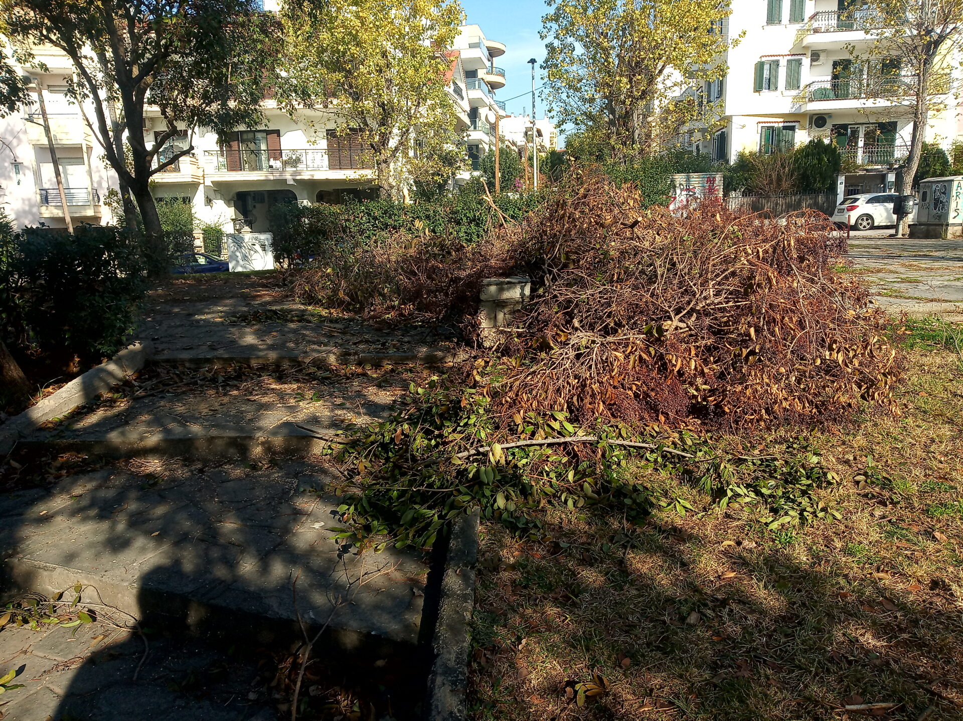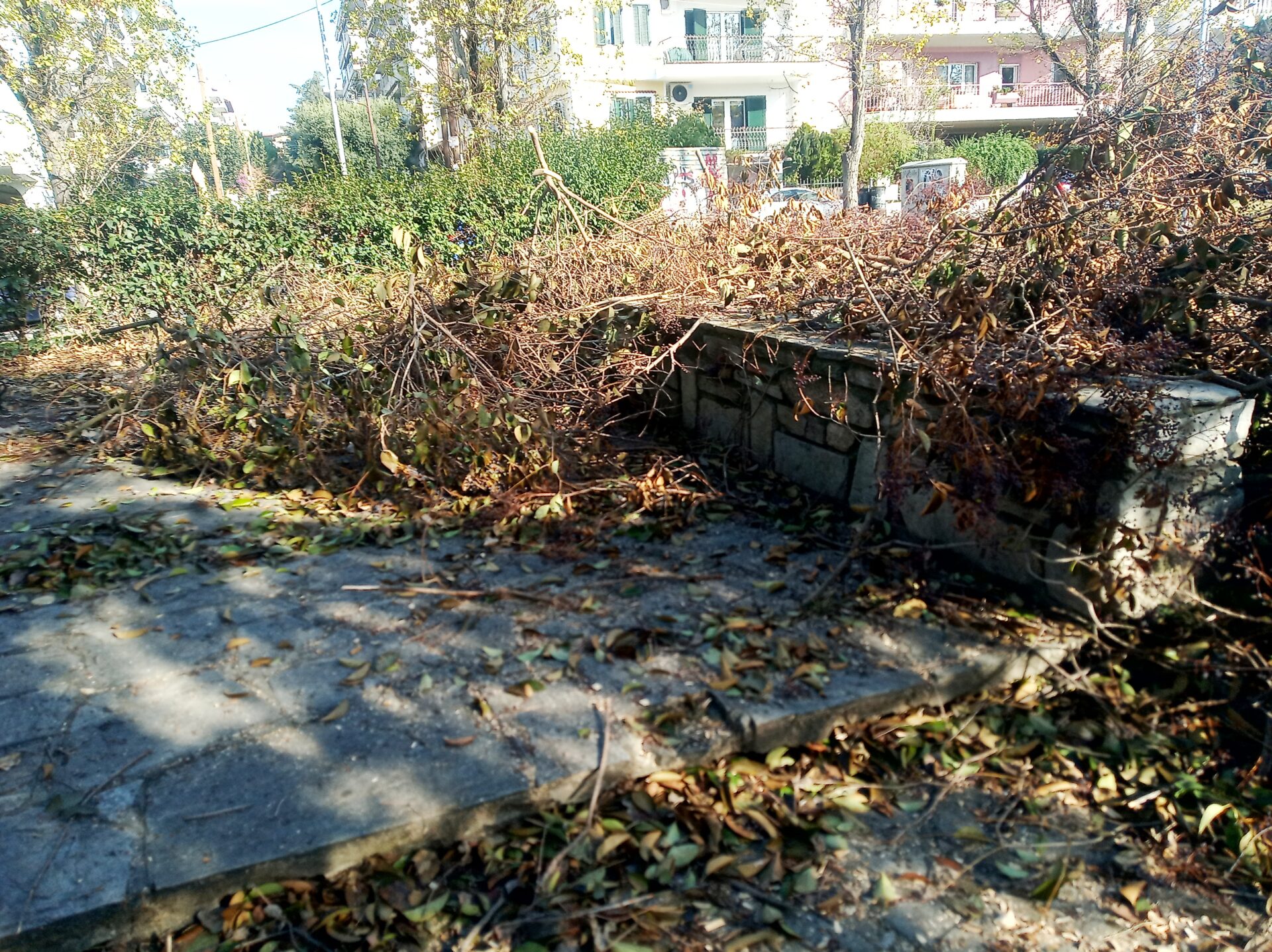 Στις παρακάτω φωτογραφίες από το πάρκο Αλλατίνη, στην οδό Αίγλης στη Χαριλάου, τα κλαδιά από διάφορα κλαδέματα, βρίσκονται πεταμένα στην δυτική πλευρά του πάρκου εδώ και σχεδόν 2 μήνες και κανείς δεν φιλοτιμήθηκε να τα μαζέψει. Σαπίζουν πεταμένα κάτω ενώ εμφανής είναι και συνολικά η εγκατάλειψη του χώρου.