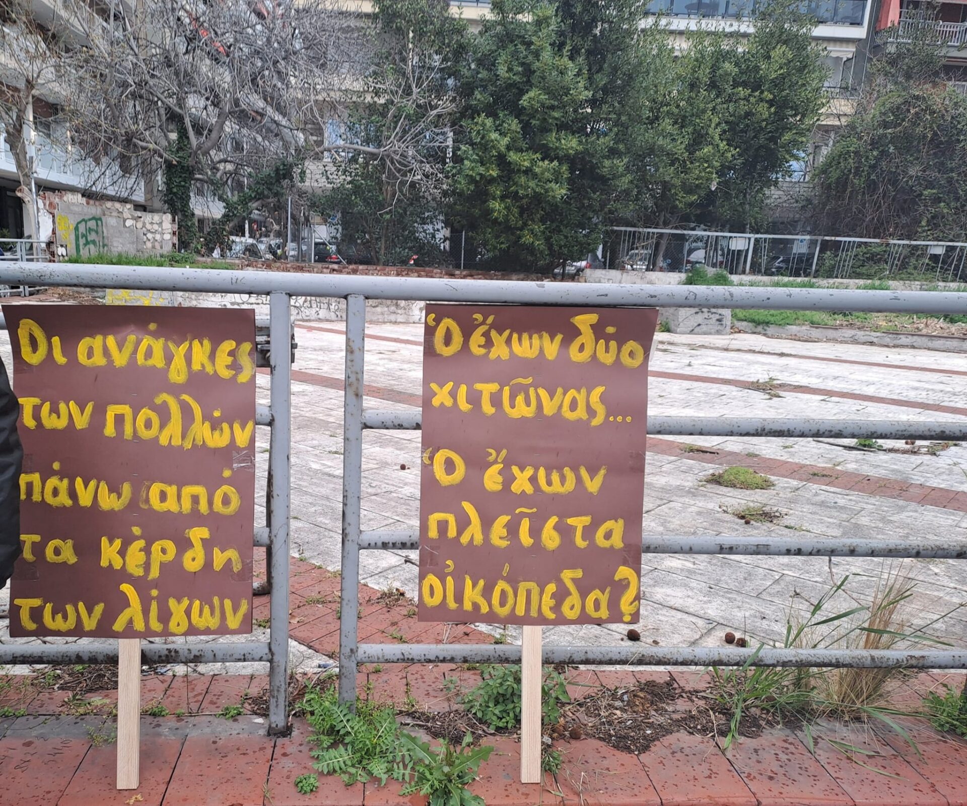 Από την πλευρά τους οι κάτοικοι, επιμένουν ότι το οικόπεδο δεν πρέπει να παραδοθεί στους εργολάβους αλλά να παραμείνει κοινόχρηστο και να αξιοποιηθεί για την ανέγερση νηπιαγωγείου που δεν υπάρχει στην περιοχή.