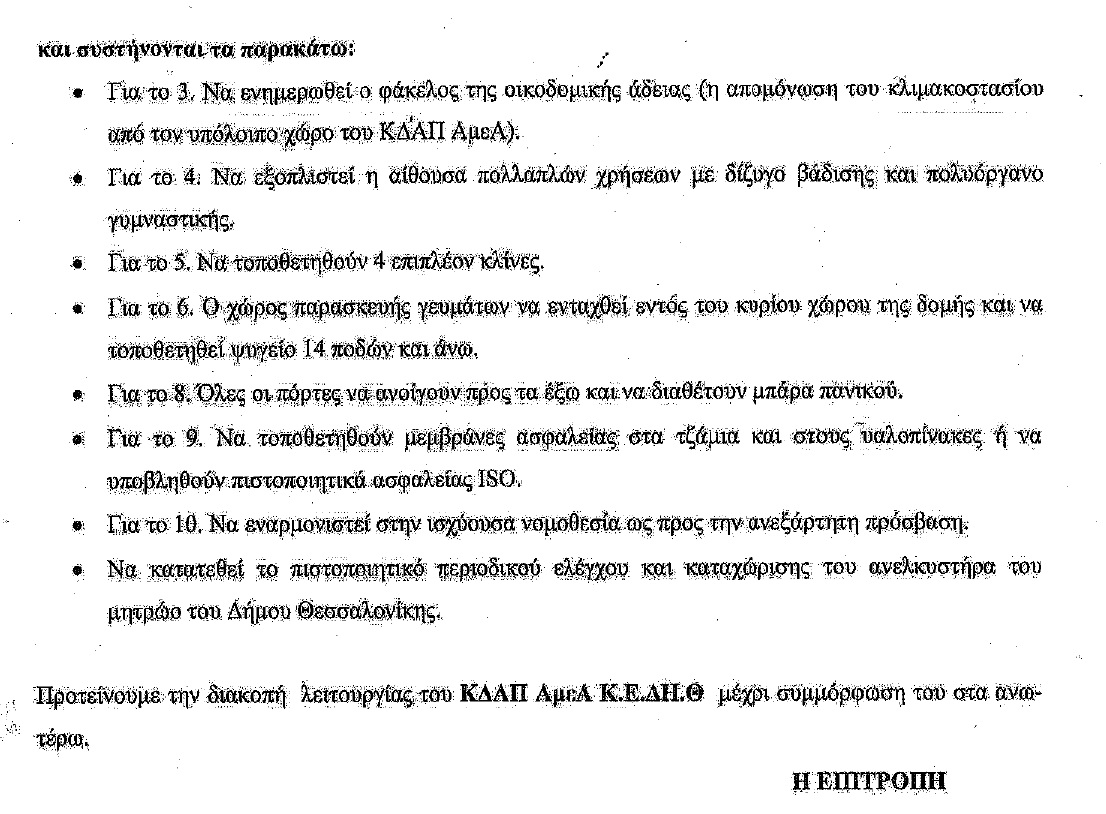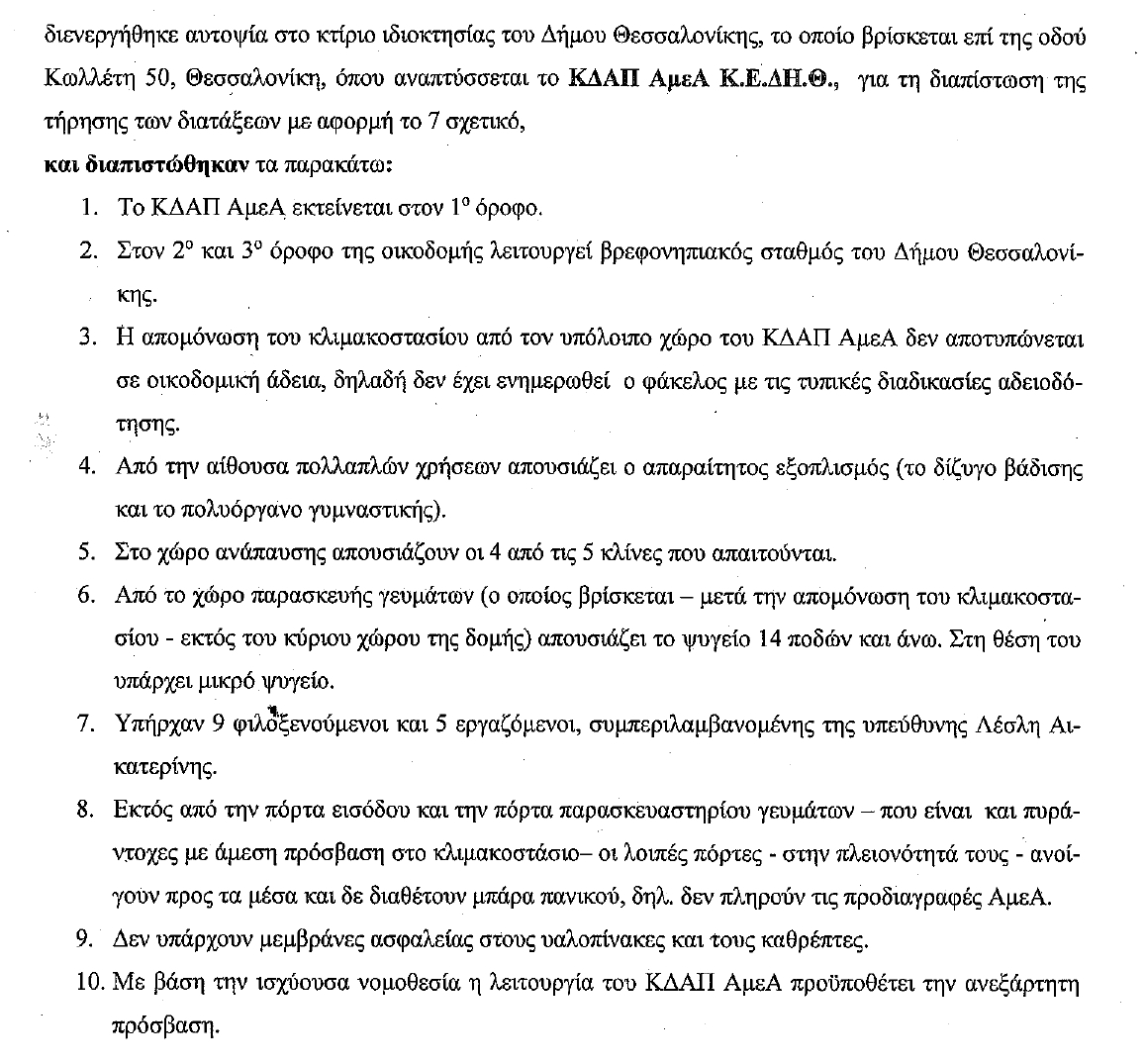 Δείτε τις παρατηρήσεις του κλιμακίου της Γενικής Διεύθυνσης Δημόσιας Υγείας και Κοινωνικής Μέριμνας της Περιφέρειας Κεντρικής Μακεδονίας: