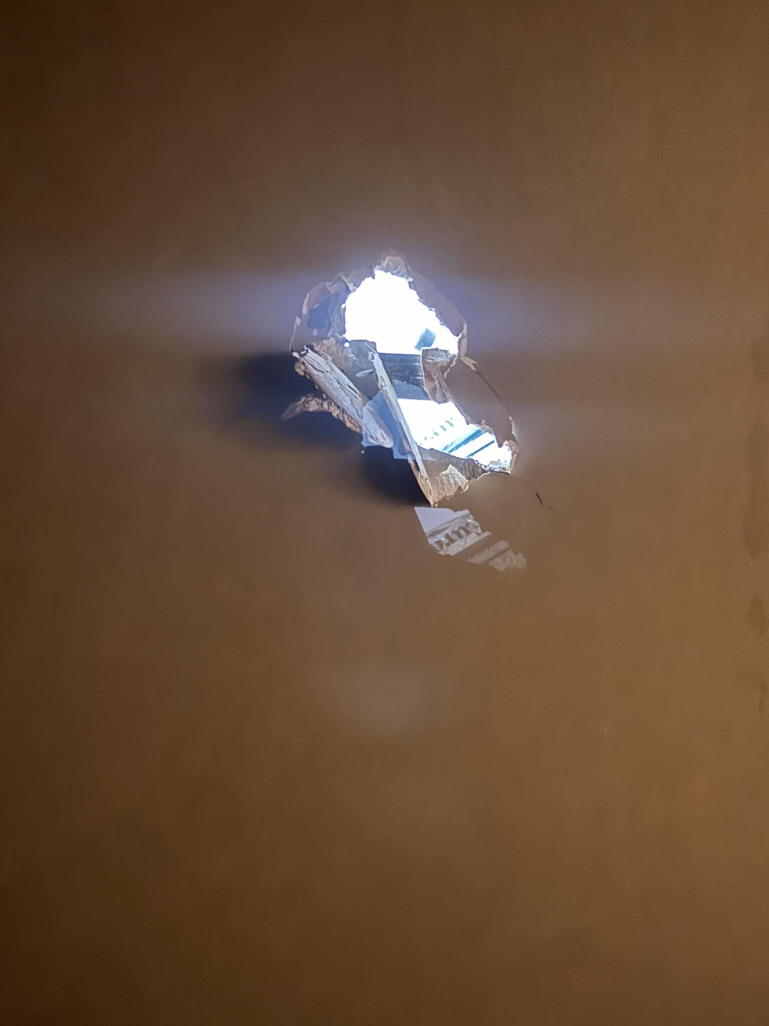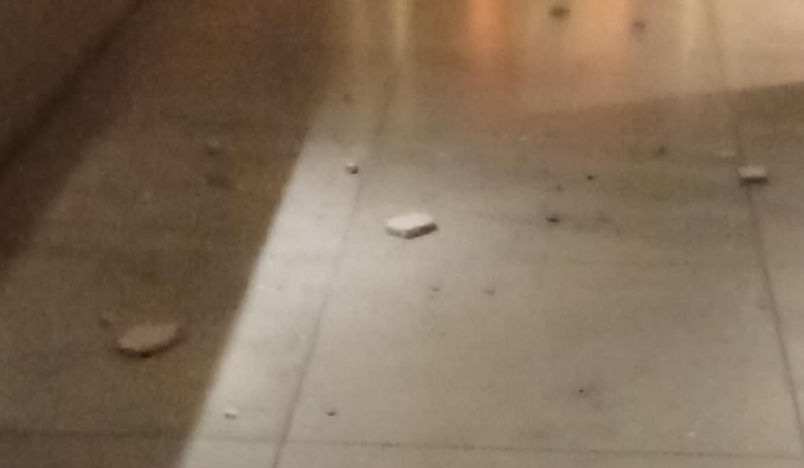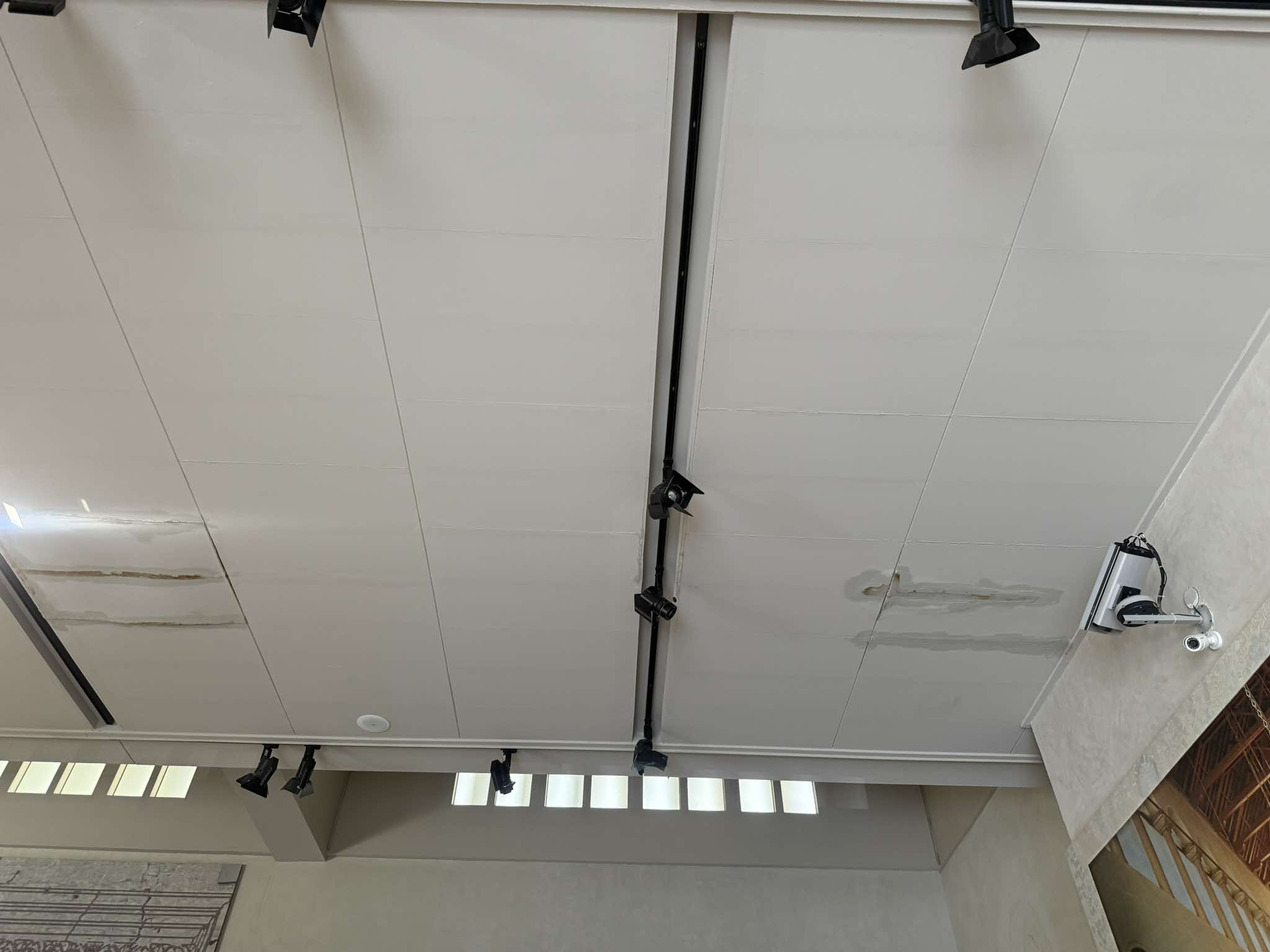 Το σημείο που βρίσκεται η γυψοσανίδα που υποχώρησε βρίσκεται στην είσοδο της αίθουσας.
