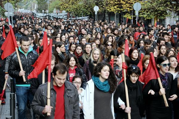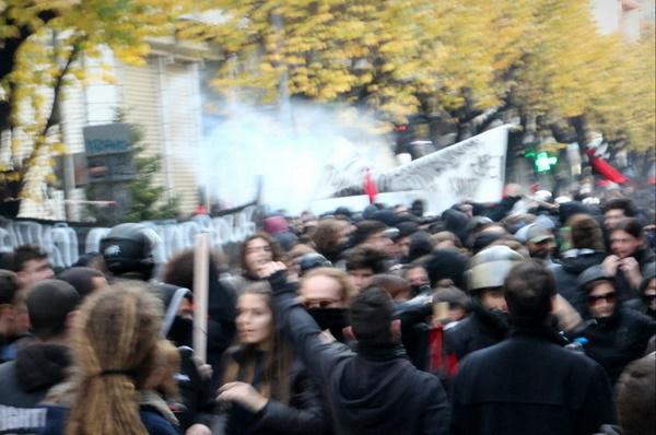 Υ.Γ. Σύμφωνα με πληροφορίες που αναρτήθηκαν από την Αντιεξουσιαστική Κίνηση Θεσσαλονίκης: Γύρω στα 30 άτομα έχουν μεταφερθεί σήμερα στο Ιπποκράτειο Νοσοκομείο Θεσσαλονίκης, τραυματισμένα από την αστυνομία με επικίνδυνα χτυπήματα από γκλομπ στο κεφάλι, με θλαστικές κακώσεις (στα πλευρά κλπ), με σοβαρά προβλήματα ακοής κι εγκαύματα από κρότου λάμψης. Στο νοσοκομείο επίσης,σύμφωνα με τις ίδιες πληροφορίες, διακομίζονται και τραυματισμένοι διαδηλωτές κατά την προσαγωγή τους νωρίτερα από την αστυνομία, στη διάρκεια της πορείας. Οι συνολικές προσαγωγές είναι πιθανότατα 8.