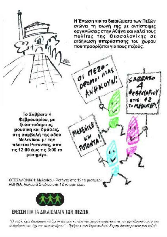 Σάββατο, 4 Φεβρουαρίου 2012, μετά από μια πραγματικά παγωμένη εβδομάδα, ο καιρός καλοσυνεύει, ίσως για να υποδεχτεί την εκδήλωση της Ένωσης για τα δικαιώματα των πεζών στην περιοχή της Ροτόντας – μνημείου της παγκόσμιας πολιτιστικής κληρομονιάς.