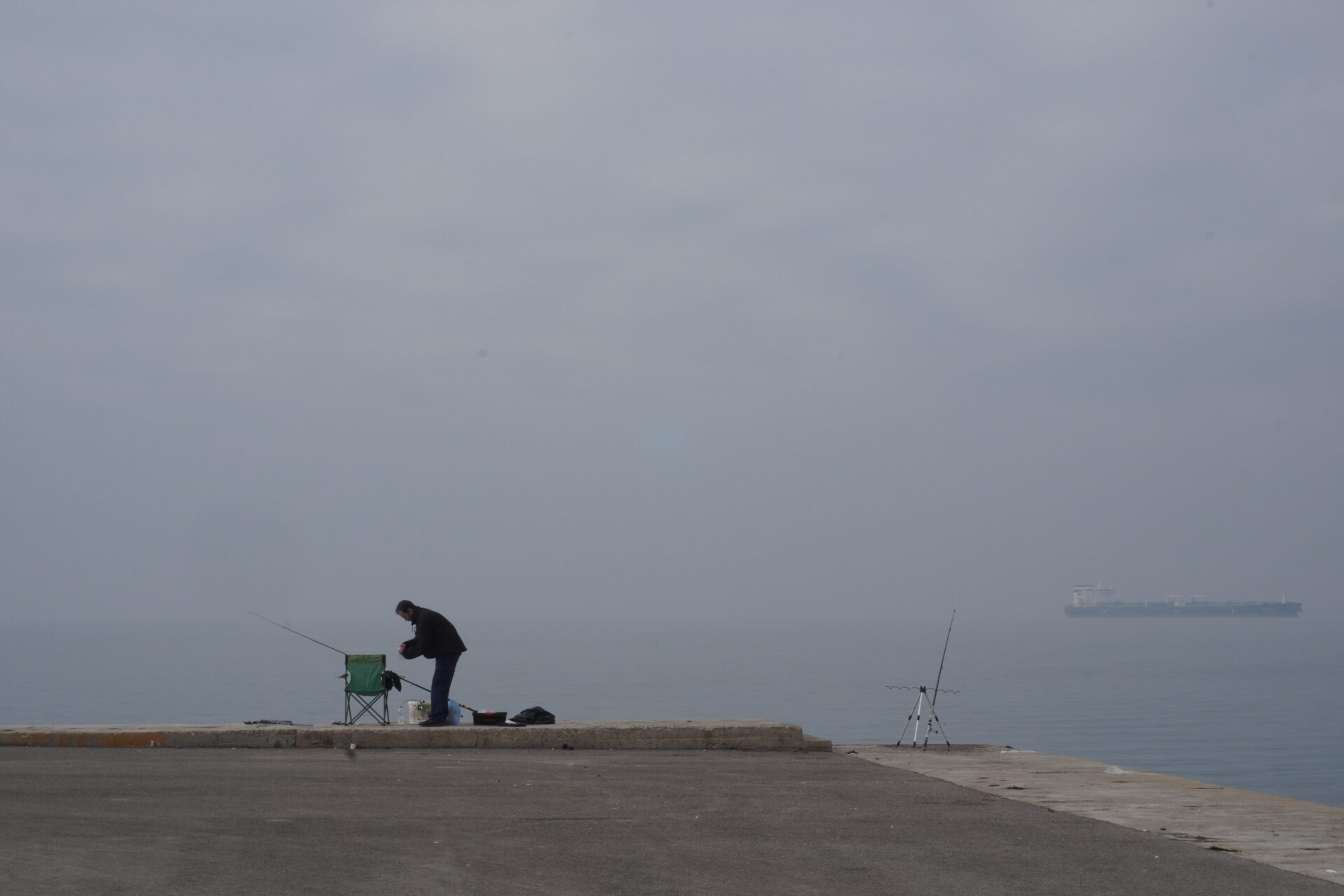 Μένει εκεί για ώρα, χωρίς βιασύνη. Κοιτάζει το νερό, περιμένει, σκέφτεται. Αν πιάσει κάτι, καλώς. Αν όχι, δεν τον πειράζει. Οι μέρες του περνούν έτσι — με ένα καλάμι στο χέρι και τη θάλασσα απέναντί του.