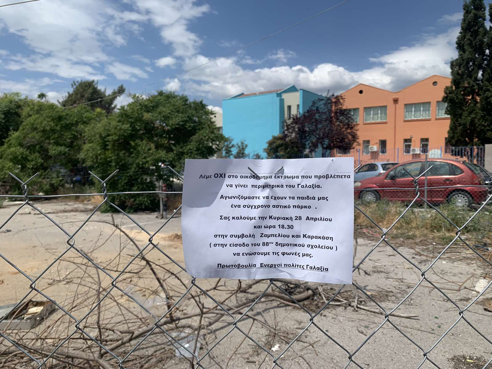 Η εκπαιδευτικός Όλγα Τζημίρη, κάτοικος της περιοχής και μέλος της «Επιτροπής Κατοίκων Γαλαξία», αφού τονίζει ότι «η προσπάθεια και η αγωνία των κατοίκων είναι να διασωθεί ένας ελεύθερος πράσινος χώρος, που είναι απαραίτητος στην περιοχή, επισημαίνει ότι υπάρχουν πολλά κενά στη διαδρομή του οικοπέδου, όταν μάλιστα είχε βρεθεί ένα βήμα πριν την απαλλοτρίωση». «Εμείς ζητάμε το αυτονόητο. Ο χώρος να μείνει κοινόχρηστος σε μία περιοχή που ασφυκτιά και έχει ανάγκη από πράσινο και από παιδική χαρά» τονίζει και αναφέρει πως «το διπλανό δημοτικό σχολείο έχει 350 μαθητές. Αυτά τα παιδιά δεν πρέπει να έχουν χώρο άθλησης και χώρο παιχνιδιού;».