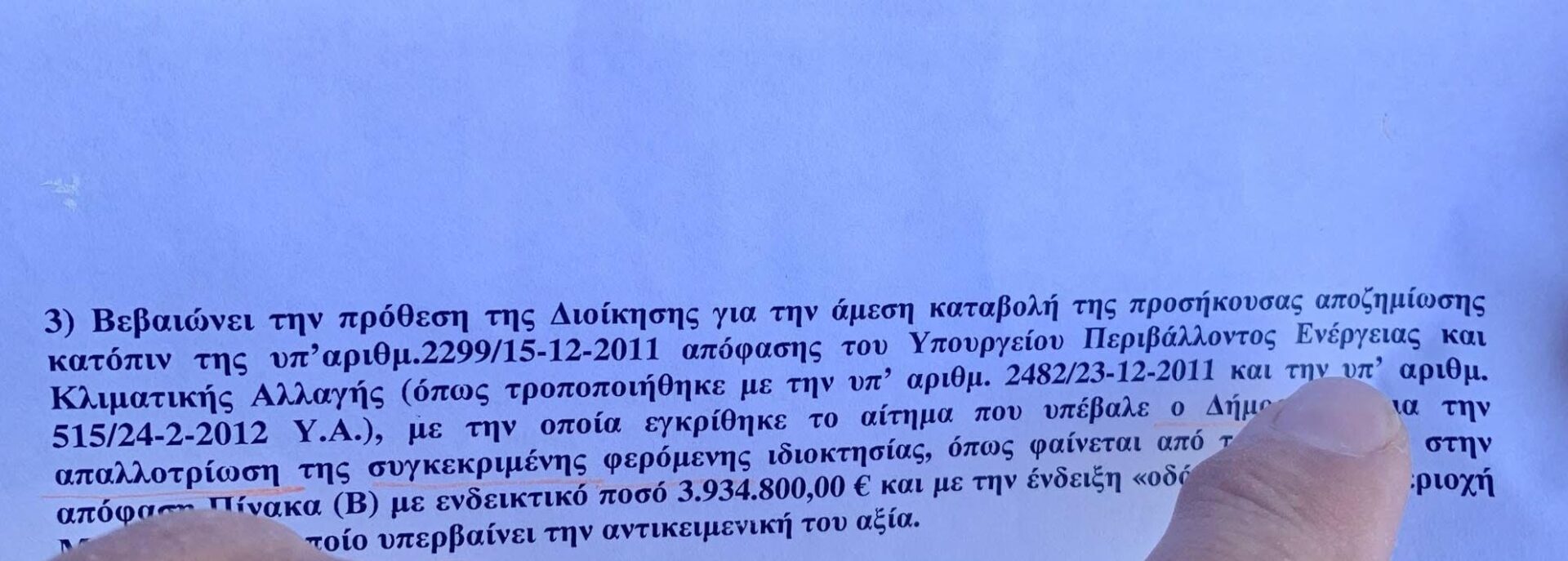 Και η αναφορά στην σχετική απόφαση του υπουργείου Περιβάλλοντος με το ποσό που είχε οριστεί: