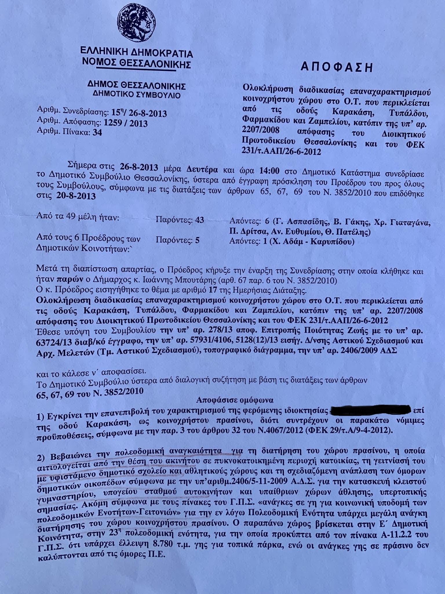 Το τραγικό είναι ότι ο χώρος παλαιότερα από το δήμο Θεσσαλονίκης είχε χαρακτηριστεί ως χώρος πρασίνου, μάλιστα με ομόφωνη απόφαση του δημοτικού συμβουλίου, και είχε δρομολογηθεί η απαλλοτρίωση του με το ποσό των 3.934.800 ευρώ, που είχε εγκριθεί από το υπουργείο Περιβάλλοντος, Ενέργειας και Κλιματικής Αλλαγής.