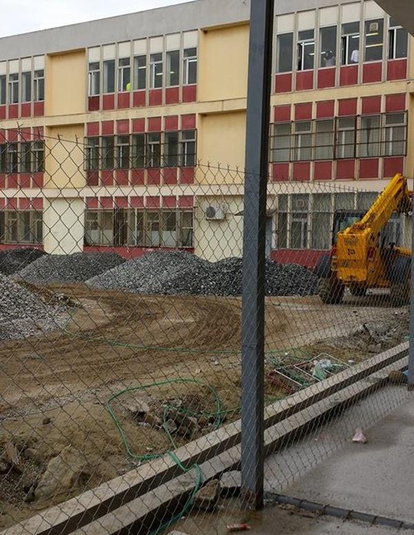 Βασίλης: Το σχολείο δεν ήταν ούτε καθαρό ούτε βαμμένο ούτε έτοιμο. Είπαν θα κάνουν τα πάντα για να είναι έτοιμο. Το αποτέλεσμα στο τέλος θα είναι καλό αλλά δεν ξέρω αν θα είναι καλό για εμάς ή για το δημοτικό και μόνο. Εμείς για να γίνει το κτίριο αυτό χάσαμε την αυλή με τα δέντρα, τα παγκάκια, τα λουλούδια. Καταστρέψανε την αυλή για να μπορέσουν να δουλέψουν και επί τέσσερα χρόνια, βγαίνουμε σε ένα χώρο με λάσπες και λαμαρίνες είναι σαν προαυλισμός σε φυλακή. Οι εργασίες ξεκίνησαν όταν ήμουν πρώτη γυμνασίου και τώρα είμαι Β’ λυκείου. Όσο περνάει ο καιρός περιορίζουν ακόμα πιο πολύ το χώρο, είμαστε σαν σε κοτέτσι, ένας διάδρομος με σύρμα. Και υπάρχει και το πιο σοβαρό κομμάτι, τα ατυχήματα. Η μεγάλη πόρτα από λαμαρίνα που βάλανε ανοιγοκλείνει με τον αέρα και κάποια στιγμή χτύπησε δυο παιδιά στο κεφάλι. Ζαλίστηκαν και ευτυχώς δεν έγινε τίποτα πιο σοβαρό, αν γινότανε κάτι τι θα μας λέγανε μετά. Ο χώρος είναι γεμάτος σίδερα, λακκούβες και είναι πολύ επικίνδυνος. Είμαστε δύο σχολεία και γυμνάσιο και λύκειο και από θαύμα δεν έχει γίνει κάποιο σοβαρό ατύχημα ακόμα.