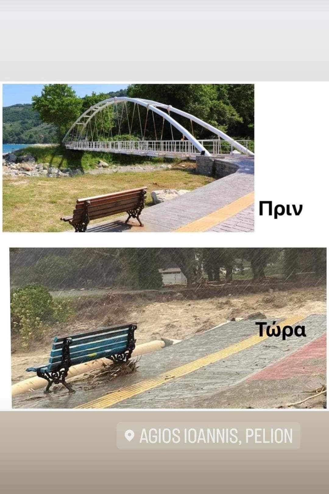 Συγκλονίζουν οι εικόνες της απόλυτης καταστροφής από τον Άγιο Ιωάννη Πηλίου, όπου το πρωί πραγματοποιήθηκε απεγκλωβισμός παιδιού ενώ το ποτάμι φούσκωσε τόσο που παρέσυρε την κρεμαστή γέφυρα.