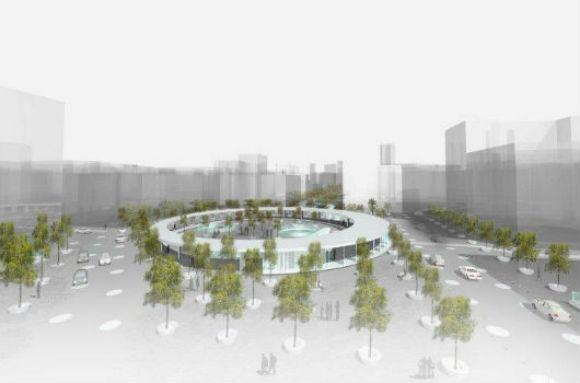 Στόχος της προτεινόμενης διαμόρφωσης είναι να επαναφέρει την ισχυρά συμβολική εικόνα του κύκλου οργανώνοντας έναν ζωντανό κεντρικό πυρήνα με πολλές κινήσεις, ροές, διελεύσεις αλλά και στάσεις. Προτείνεται η διαμόρφωση μια κυκλικής κατασκευής – ενός λειτουργικού δακτυλίου και η μεταφορά τριών εισόδων / εξόδων του Μετρό στο κέντρο της πλατείας. Το συνολικό σύστημα του «αστικού νευρώνα» θα πρέπει να αντιμετωπιστεί ως ένας ζωντανός οργανισμός που μεγαλώνει και επεκτείνεται μέσα στο σώμα της πόλης, δίνοντας τον απαραίτητο χρόνο αλλά και τις κατάλληλες στρατηγικές ώστε οι πολίτες να το οικειοποιηθούν, να το κατοικήσουν και τελικά να το συνδιαμορφώσουν.