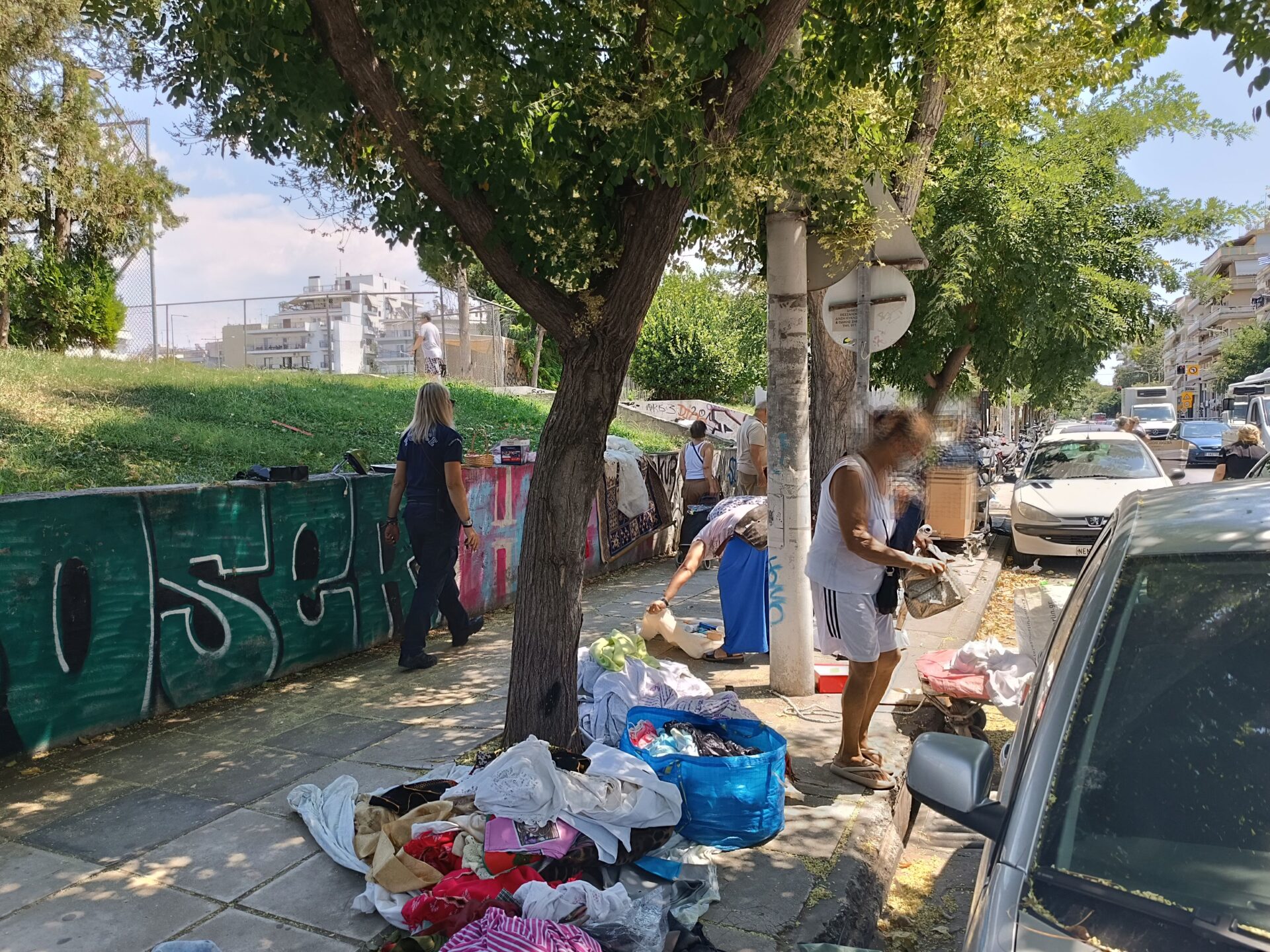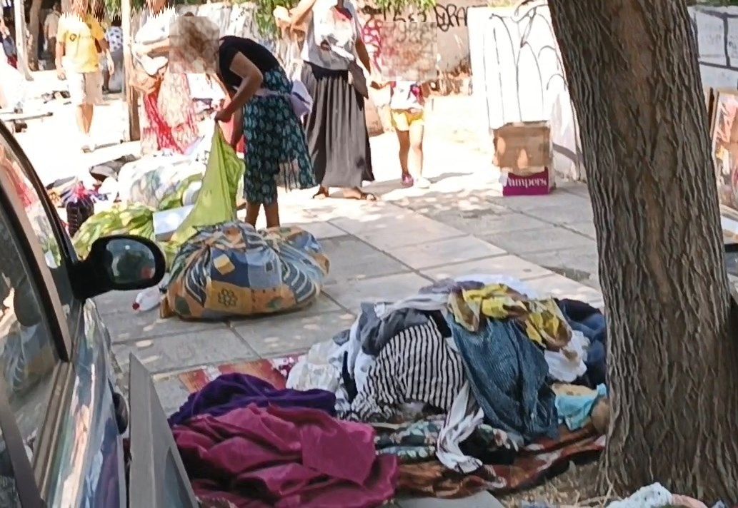 «Δεν μας θέλουν γιε μου, δεν μας δίνουν άδειες, μας κυνηγάνε. Να μας δώσουν άδειες να είμαστε νόμιμοι», μας είπε μία ηλικιωμένη ρομά που πωλούσε εσώρουχα και είδη ρουχισμού χθες στην Δελφών. Εκείνη την ώρα μόλις είχε εμφανιστεί ένα περιπολικό της αστυνομίας και όλοι βιαστικά έσπευσαν να μαζέψουν τα εμπορεύματα που είχαν απλώσει κατά μήκος της οδού, από την επάνω πλευρά του δρόμου, μέχρι τη γωνία με την οδό Γεωργίου Παράσχου.
