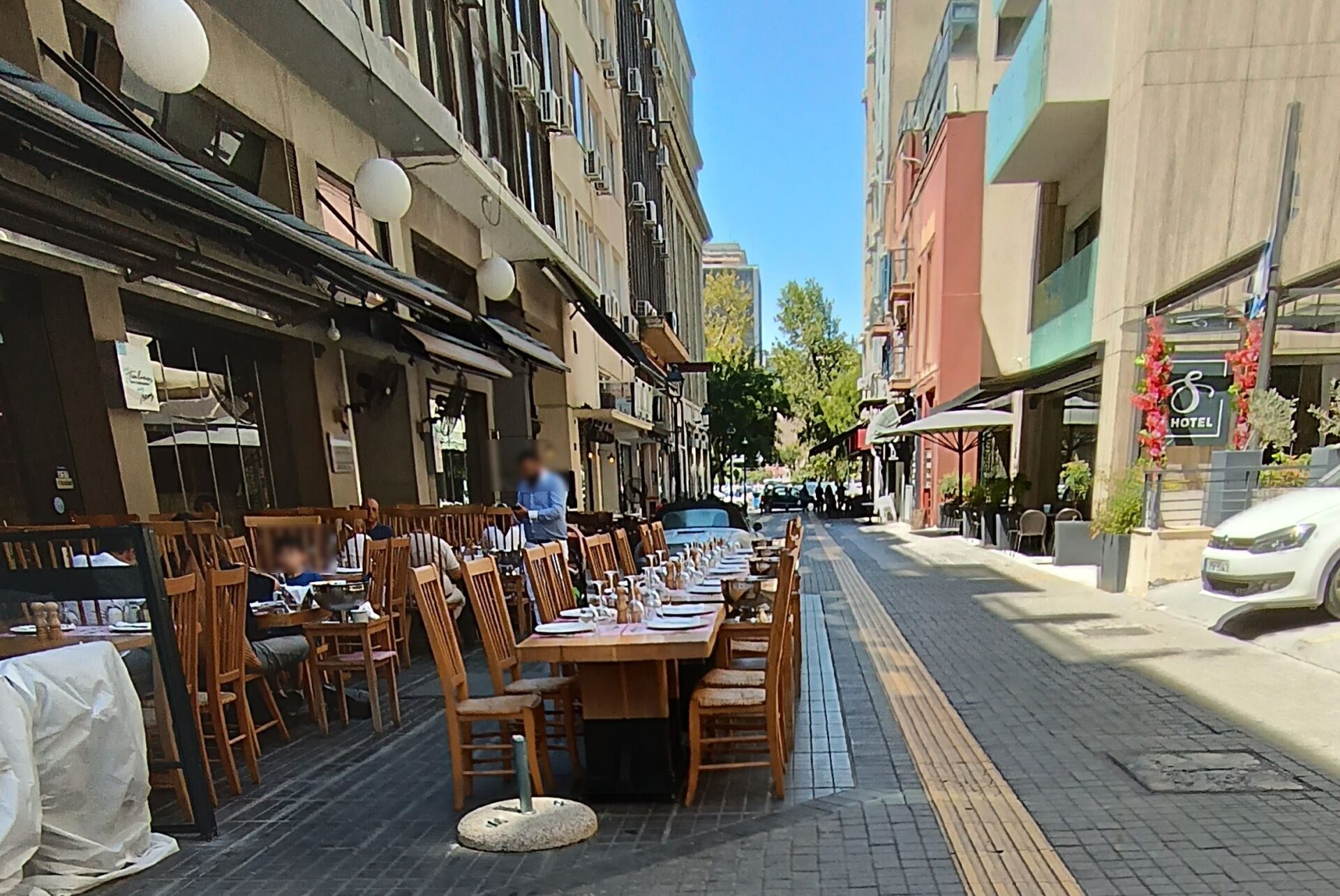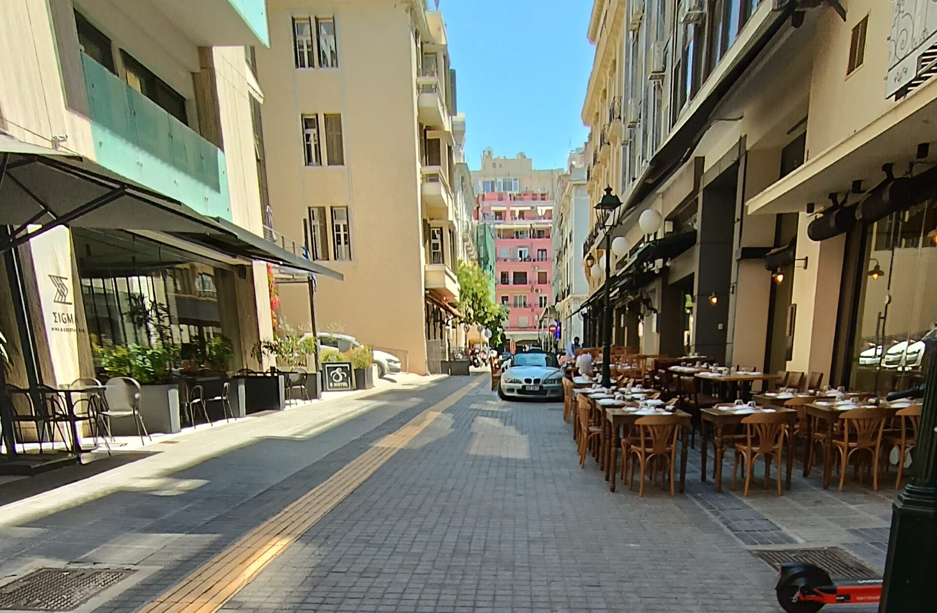 Αλλά δεν φτάνουν όλα αυτά έχουμε και το “πανηγύρι” με τα τραπεζοκαθίσματα που συνεχίζεται αμείωτο. Κάποιοι καταστηματάρχες μάλιστα αποκλείουν και κομμάτια του δρόμου για να μην ενοχλούνται οι πελάτες από τα αυτοκίνητα, ενώ έχουν εξαφανίσει ολόκληρα πεζοδρόμια, πάντα με την άδεια του δήμου και της αστυνομίας.