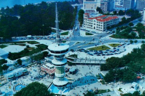 Θεόρατος και ακατανόητος φάνταζε ο πύργος του ΟΤΕ, όταν αποκαλύφθηκε στους επισκέπτες της ∆ΕΘ το 1970. Τα 75 µέτρα ύψος, το περιστρεφόµενο πάτωµα, η υπέροχη θέα ήταν αρκετά για να προκαλέσουν το δέος. Σε σχήµα ανεστραµµένου κώνου, ο πύργος κατασκευάστηκε σε σχέδια του αρχιτέκτονα Αλέξανδρου Αναστασιάδη για να καλύψει τις τηλεπικοινωνιακές ανάγκες του ΟΤΕ αλλά λειτούργησε για χρόνια ως εκθεσιακό περίπτερο του Οργανισµού και σήµερα σερβίρει καφέ και σνακ.