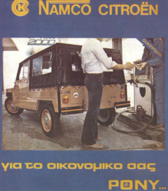 Και όµως υπήρξε πετυχηµένη αυτοκινητοβιοµηχανία στην Ελλάδα. Τέλη δεκαετίας του ’60, ο Πέτρος Κοντογούρης, δηµιουργεί τη NAMCO, και στο τέλος της δεκαετίας, παρουσιάζει στην ∆ιεθνή Έκθεση Θεσσαλονίκης το PONY, µια διεθνή σχεδίαση του γραφείου FNF CITROEN, για ένα απλό – φθηνό – εύκολο στην κατασκευή του όχηµα. Η NAMCO παράγει το µικρό PONY σε ολοκαίνουργιο εργοστάσιο στην Θεσσαλονίκη και αµέσως γίνεται µεγάλη επιτυχία. Είναι τόσο πετυχηµένη η σχεδίαση, η κατασκευή και τόσο χαµηλό το κόστος αγοράς και χρήσης, ενώ αποδεικνύεται «σκυλί» σε αντοχές, που πουλάει σε µεγάλα νούµερα (πάνω από 30.000 κατασκευαστηκαν και πουλήθηκαν) τόσο στην Ελλάδα (το αγοράζουν ιδιώτες, οι Ένοπλες ∆υνάµεις, ο ΟΤΕ και η ∆ΕΗ.), όσο και στο εξωτερικό (εξαγωγές στην Αµερική). Σήµερα περιµένει έγκριση για να ξεκινήσει και πάλι η παραγωγή του στο εργοστάσιο της Θέρµης Θεσσαλονίκης.