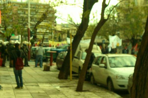 Πίσω στο Εργατικό Κέντρο Θεσσαλονίκης: Λίγο μετά τις 6 το απόγευμα άρχισαν να συγκεντρώνονται στην περιοχή ακόμη περισσότερα άτομα, όχι μόνο του αντιεξουσιαστικού χώρου, αλλά κι εκπαιδευτικοί, μαθητές και απλοί πολίτες, κάθε ηλικίας. Ωστόσο η πορεία που είχε προκαθοριστεί δεν ξεκίνησε ποτέ αφού, λίγο μετά τις 7 η ώρα μηχανές των ΜΑΤ άρχισαν να κατεβαίνουν το δρόμο του Εργατικού Κέντρου και να ρίχνουν απανωτά δακρυγόνα και στη συνέχεια κρότου – λάμψης στον κόσμο που ήταν συγκεντρωμένος. Αμέσως οι περισσότεροι άρχισαν να κατευθύνονται προς την Ολύμπου, ενώ τα δακρυγόνα είχαν «πνίξει» όλη την περιοχή. Αρκετοί ωστόσο ανασυντάχθηκαν για να μπορέσουν να «κρατήσουν» την κατάληψη στο χώρο του Κέντρου ενώ, σύμφωνα με πληροφορίες δακρυγόνα άρχισαν να πέφτουν και μέσα σε αυτό.
