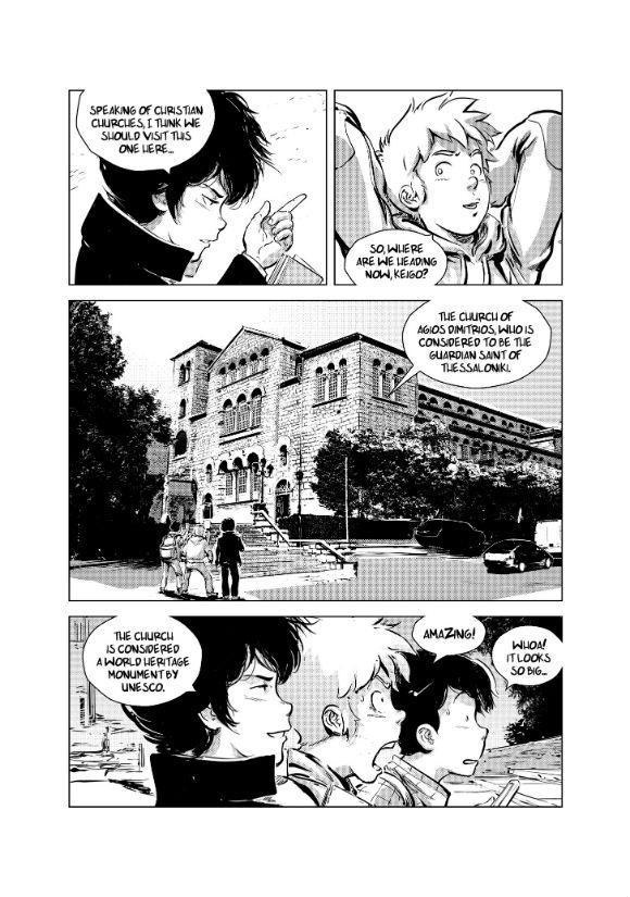 “Η αγάπη για την πόλη μας είναι τεράστια και ανέκαθεν θέλαμε να δημιουργήσουμε ένα έργο με θέμα το οδοιπορικό της Θεσσαλονίκης. Στα τέλη του 2012 επισκεφτήκαμε την πρόεδρο της Θεσσαλονίκης: Ευρωπαϊκής Πρωτεύουσας Νεολαίας 2014, κα. Πασχαλίδου Μαρία, η οποία μας έδωσε την ευκαιρία μέσα σε 30 σελίδες να εξιστορήσουμε αυτό το οδοιπορικό της Θεσσαλονίκης. Η κα. Πασχαλίδου μας έδωσε και το βασικό άξονα πάνω στο οποίο θα προχωρούσε η ιστορία. Ο άξονας αυτός ήταν η ερώτηση “τι θα αφήσει η μία γενιά στην επόμενη”. Μέσα στο 2013 ξεκινήσαμε την συγγραφή του έργου και καταλήξαμε να αφιερώσουμε 15 σελίδες στην Θεσσαλονίκη της Αρχαίας περιόδου και 15 σελίδες στην Θεσσαλονίκη της Σύγχρονης Περιόδου. Στην συνέχεια προχωρήσαμε σε έρευνα για την ιστορία της Θεσσαλονίκης, βρήκαμε ιστορικές πηγές, αναλύσαμε τα πρόσωπα που θα συμμετέχουν στο manga και μαζί με τον Νικήτα Εφημίδη γυρίσαμε την πόλη και βγάλαμε αμέτρητες φωτογραφίες των τοποθεσιών που θα απεικονίζαμε στα panels του manga. Οι χαρακτήρες των manga έργων μας Mythos και R.u.N. πρωταγωνιστούν και ο αναγνώστης γνωρίζει την Θεσσαλονίκη στην Αρχαία και Σύγχρονη εποχή μέσα από τα μάτια τους. Αφού ολοκληρώθηκε η ιστορία και ο Μάνος δημιούργησε το εξώφυλλο του manga oneshot, η κα. Πασχαλίδου έβαλε την τελευταία πινελιά στο έργο, τον τίτλο του. “ΤΟΤΕ ΚΑΙ ΤΩΡΑ, ΠΑΝΤΑ ΘΕΣΣΑΛΟΝΙΚΗ” ήταν ο τίτλος που έντυσε το manga tankoubon για την Θεσσαλονίκη.” μας λένε ο Φύλλης και ο Ραφαήλ.