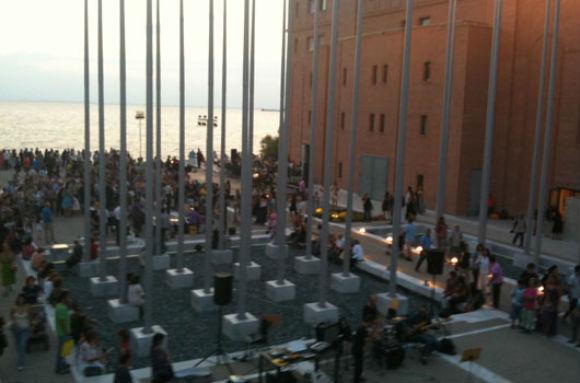 Κι όλα αυτά με δωρεάν είσοδο. Και στο πλαίσιο μιας συνεργασίας του Δήμου Θεσσαλονίκης και του Δήμου Καλαμαριάς, μιας συνεργασίας προς τη σωστή κατεύθυνση. Η λήξη ενός φεστιβάλ (Παρά θιν αλός) και η αρχή ενός άλλου (46α Δημήτρια). Και στη μέση ένας χώρος μέχρι το πρόσφατο παρελθόν κάπως αποστειρωμένος που αίφνης μεταμορφώθηκε σε έναν “δημόσιο χώρο”. Ένα απόγευμα που όμοιά του έχει τόση ανάγκη η πόλη και έχει τόση ανάγκη η ζωή μας…