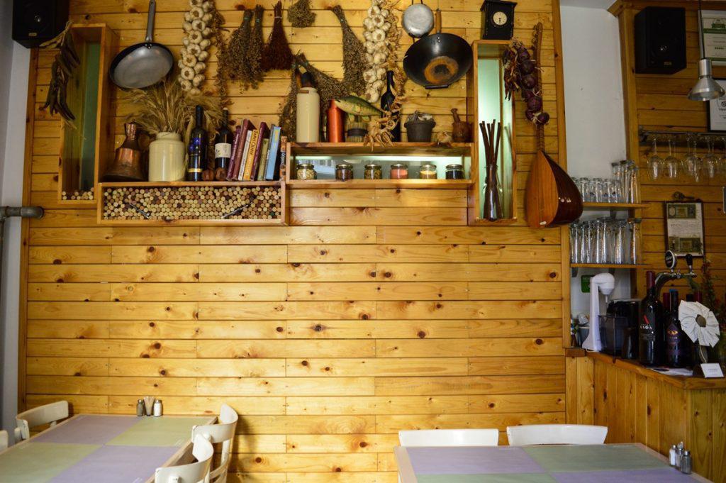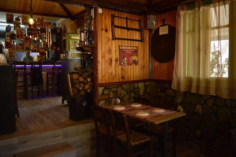 Ξύλινα τραπεζάκια με καρό τραπεζομάντηλα, καρέκλες καφενείου και ένα τρανζίστορ να παίζει κατά βάση λαϊκή μουσική θύμισαν μέρος μιας άλλης πιο αληθινής και πιο αυθεντικής εποχής. Ένας χώρος σαν το σπίτι της γιαγιάς με τη γάτα- μασκότ, τον Ρόκυ, πάντα καθισμένη δίπλα στο φούρνο. Μαθαίνω ότι ο Ρόκυ τρώει καλά. Τον βρήκαν πριν δέκα σχεδόν χρόνια στα τελευταία του και παρότι τους έλεγαν ότι πρέπει να του κάνουν ευθανασία εκείνοι τον κράτησαν. Τώρα τρώει συνέχεια κοτόπουλα και κιμάδες.