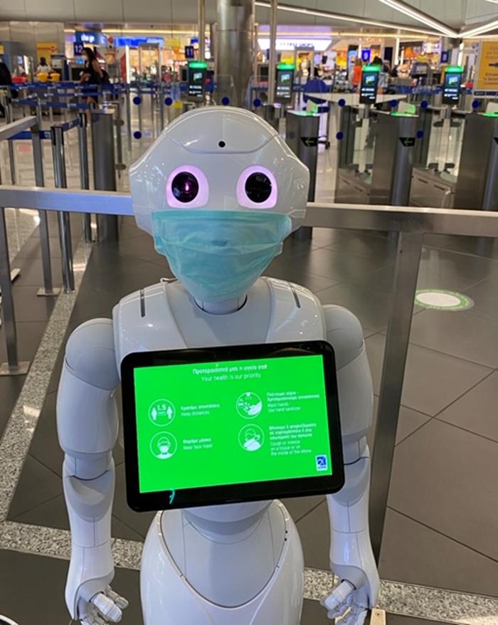 Όπως αναφέρεται σε ανακοίνωση, με το μήνυμα “Προτεραιότητά μας η υγεία σας” το μεγαλύτερο αεροδρόμιο της χώρας επιστράτευσε τα δημοφιλή ρομπότ, Pepper, που ήδη είχε στη διάθεσή του για να ενημερώνουν (σε Ελληνικά και Αγγλικά) με το δικό τους ξεχωριστό τρόπο τους ταξιδιώτες, οι οποίοι άρχισαν πάλι σταδιακά να επιστρέφουν από τις 15 Ιουνίου.