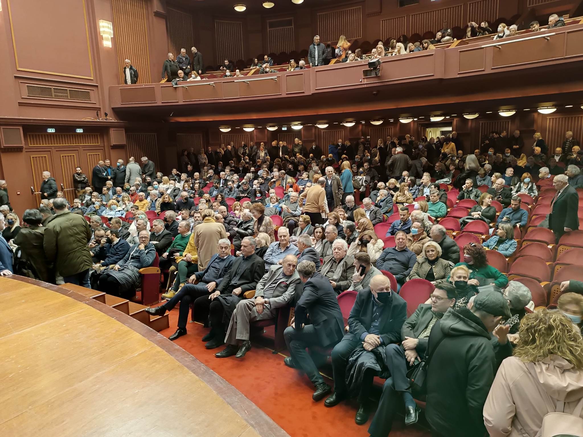 Πριν την ομιλία Αγγελούδη, στο κατάμεστο Ολύμπιον, προηγήθηκαν κάποια δρώμενα που πλαισίωσαν ενημερωτικά την εκδήλωση. Προβλήθηκαν βίντεο με μηνύματα στήριξης εκπροσώπων φορέων μεταξύ των οποίων ξεχώρισαν εκείνα της Λούκα Κατσέλη και του Πύρρου Δήμα, ενώ προβλήθηκε και ένα βίντεο για την προσωπική διαδρομή του υποψήφιου δημάρχου, από τα πρώτα του χρόνια στην Άνω Πόλη, τις σπουδές του, την επαγγελματική ενασχόληση του και την πολιτική του δράση.