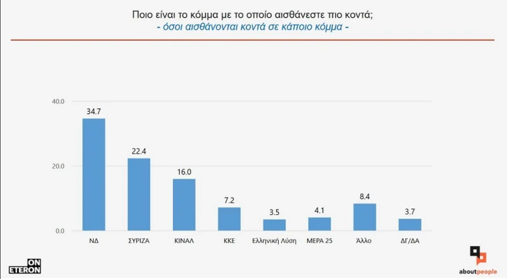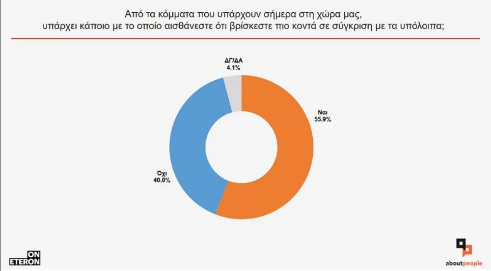 Υπάρχει η εξής ερώτηση: «Από τα κόμματα που υπάρχουν σήμερα στη χώρα μας, υπάρχει κάποιο με το οποίο αισθάνεστε ότι βρίσκετε πιο κοντά σε σχέση με τα υπόλοιπα;».