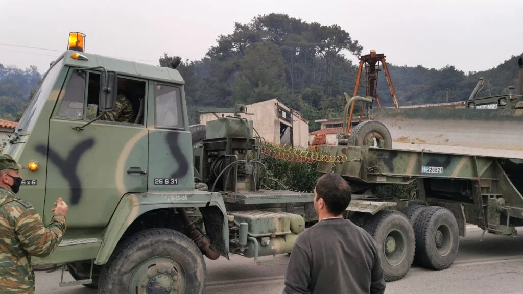 Πριν σκοτεινιάσει θα επιχειρήσουν δύο πυροσβεστικά αεροπλάνα τύπου καναντέρ που φτάνουν στο νησί.