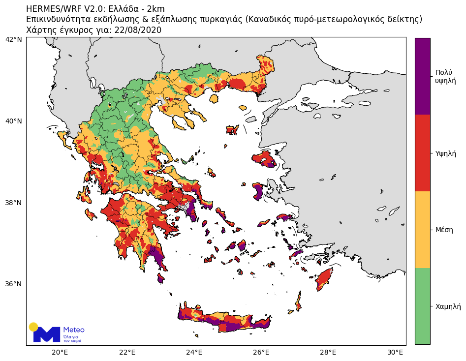 Αξίζει τέλος να σημειωθεί ότι με βάση τον Καναδικό πυρό-μετεωρολογικό δείκτη που υπολογίζει επιχειρησιακά το ΕΑΑ/ΜΕΤΕΟ, η επικινδυνότητα εκδήλωσης και εξάπλωσης πυρκαγιάς στην περιοχή της Αν. Μάνης ήταν υψηλή έως πάρα πολύ υψηλή (Εικόνα 3).