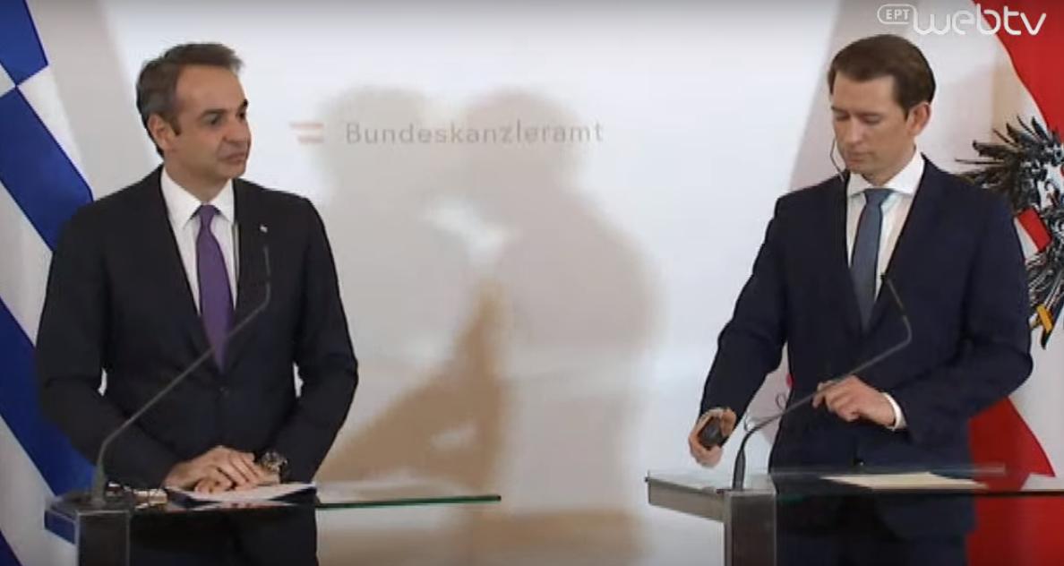 Μετά τη συνέντευξη Τύπου, ο Έλληνας πρωθυπουργός και ο Αυστραικός καγκελάριος, από το μέγαρο της Καγκελαρίας στη Βιέννη, θα συμμετέχουν στην τηλεδιάσκεψη των 27 ηγετών της ΕΕ, για τον κορωνοϊό.