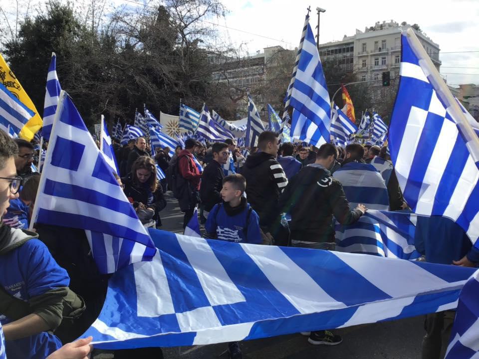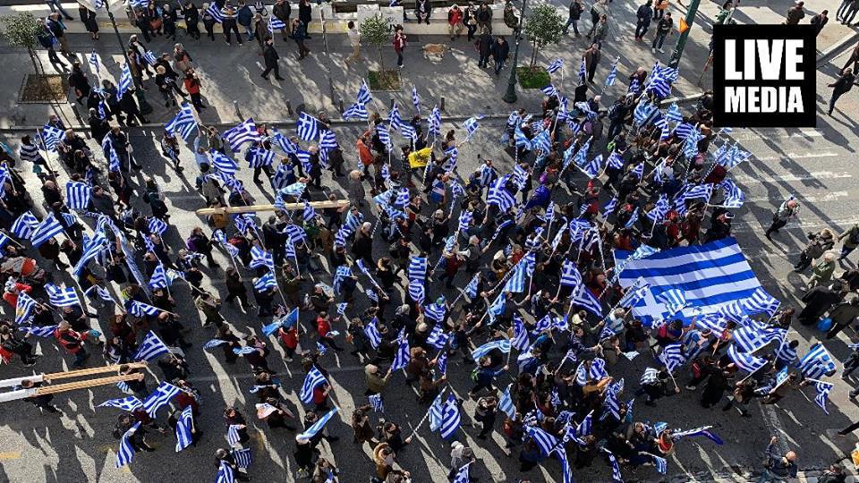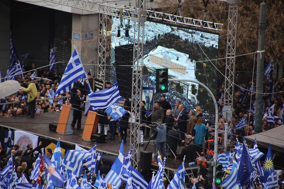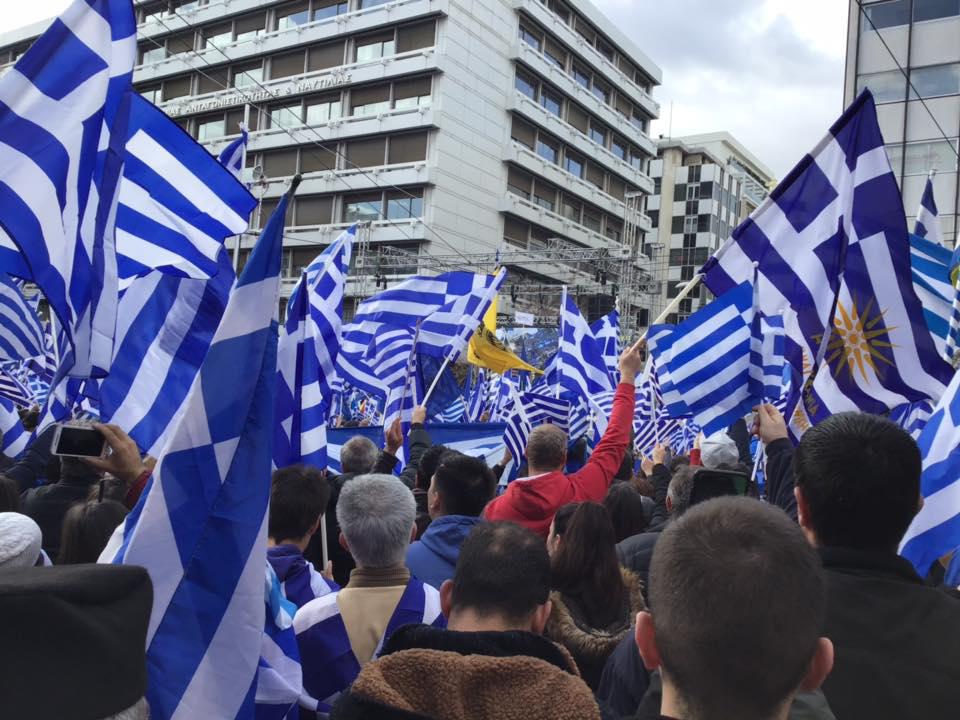 Πλήθος κόσμου, κρατώντας ελληνικές σημαίες καθώς και σημαίες με τον ήλιο της Βεργίνας, προσήλθε από το πρωί στο χώρο της συγκέντρωσης, για να διαδηλώσει ενάντια στη συμφωνία, ζητώντας «την απόσυρση της συμφωνίας καθώς και τη διεξαγωγή δημοψηφίσματος».