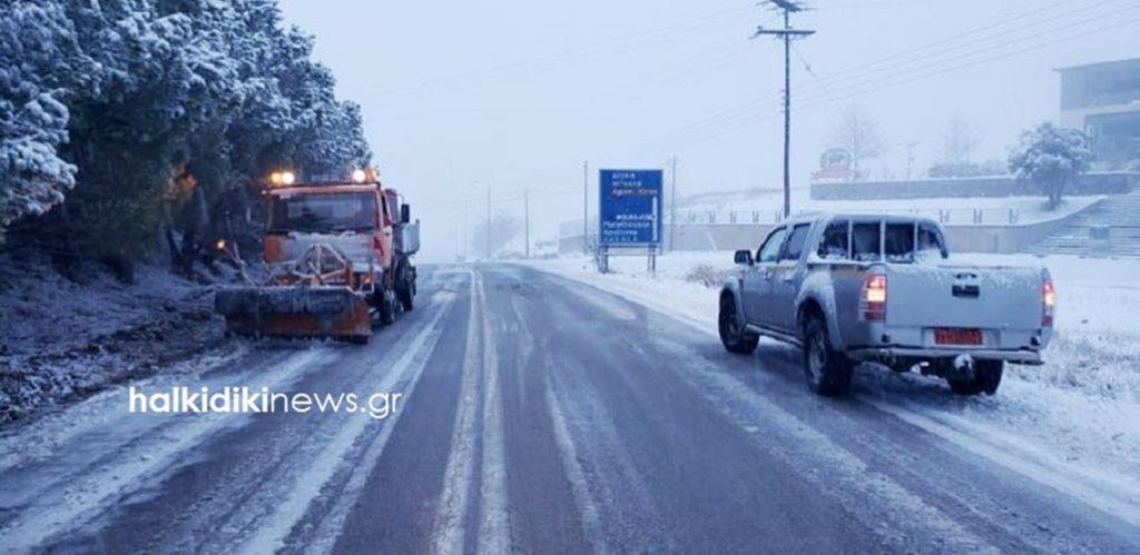 Σύμφωνα με το halkidikinews, τα μηχανήματα της Περιφέρειας ρίχνουν συνεχώς αλάτι, ενώ εκχιονιστικά παρεμβαίνουν όπου χρειάζεται.