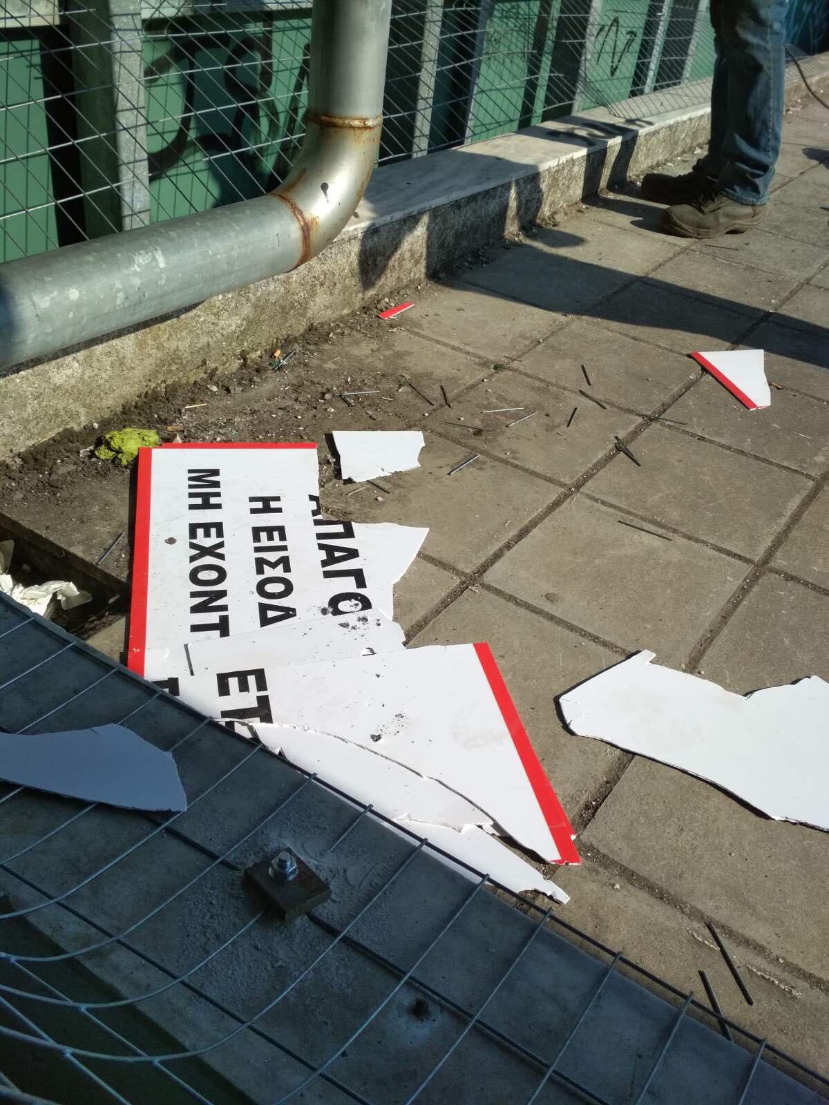 Κάποιοι έσπασαν με μανία τις ταμπέλες που τοποθετήθηκαν και προσπάθησαν να κόψουν μέρος του συρματοπλέγματος