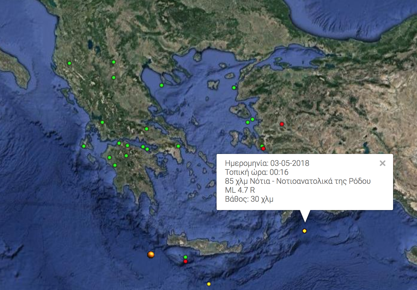 Ο σεισμός, τον οποίο το Ινστιτούτο χαρακτήρισε «ασθενή», έγινε σε απόσταση 476 χιλιομέτρων ανατολικά-νοτιοανατολικά της Αθήνας, κατά την ίδια πηγή.