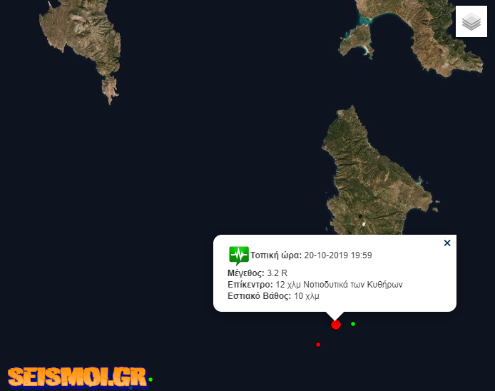 Σεισμική δόνηση 3,2 ρίχτερ σημειώθηκε σήμερα στις 19:59 κοντά στα Κύθηρα. Ο σεισμός είχε εστιακό βάθος 10 χιλιόμετρα.